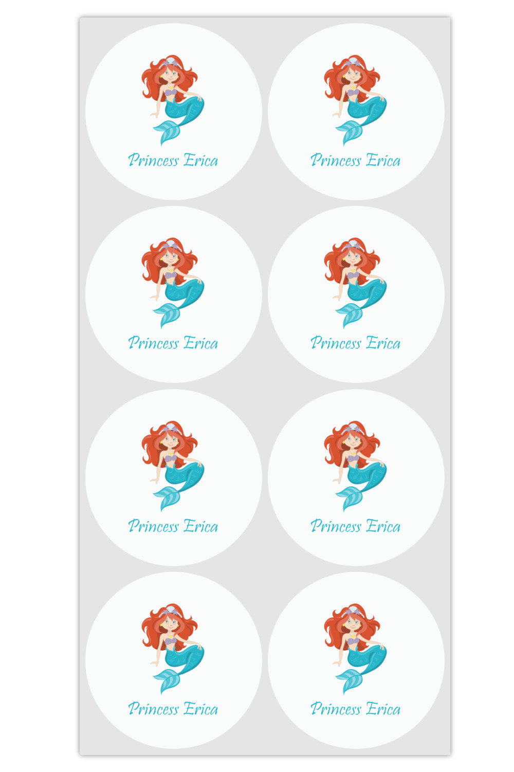 Love mermaids? This customize-able design has mermaids, sea creatures such as seahorses, fish, crabs, seahorses, oysters, seaweed and of course a treasure chest. We chose a soft blue to represent water for the background. You can change this to any color you desire. We have featured a mermaid in a round label, along with personalization under the mermaid graphic.
