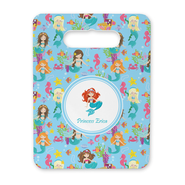 Love mermaids? This customize-able design has mermaids, sea creatures such as seahorses, fish, crabs, seahorses, oysters, seaweed and of course a treasure chest. We chose a soft blue to represent water for the background. You can change this to any color you desire. We have featured a mermaid in a round label, along with personalization under the mermaid graphic.