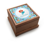 Love mermaids? This customize-able design has mermaids, sea creatures such as seahorses, fish, crabs, seahorses, oysters, seaweed and of course a treasure chest. We chose a soft blue to represent water for the background. You can change this to any color you desire. We have featured a mermaid in a round label, along with personalization under the mermaid graphic.