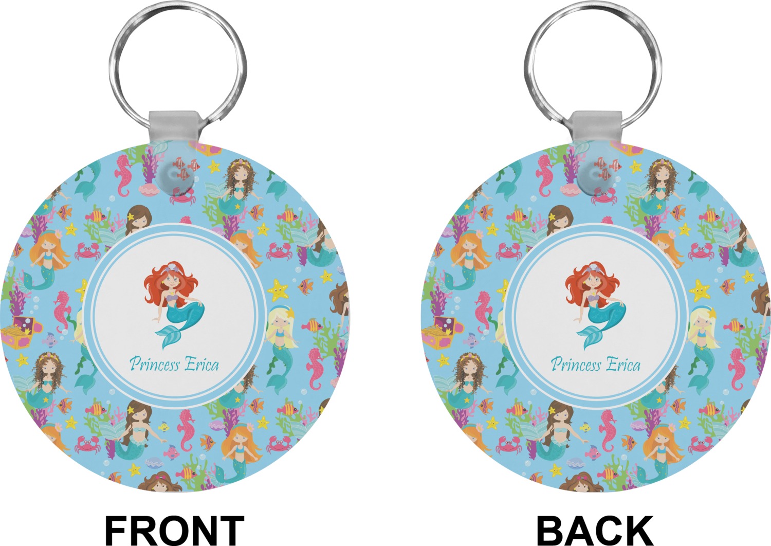 Our personalized keychains attach to the included metal, split key ring with a plastic, removable snap. Since a metal ring is included with your purchase, you have the liberty to keep your keys together on the ring, with or without your unique keychain. We offer this keychain in three different shapes: circle, heart, or diamond. We print your personalized design(s) on both sides of the key chain, and the surface has a glossy, reflective finish that only emphasizes your design. Each keychain is approximately 2.25 by 2.25 inches.