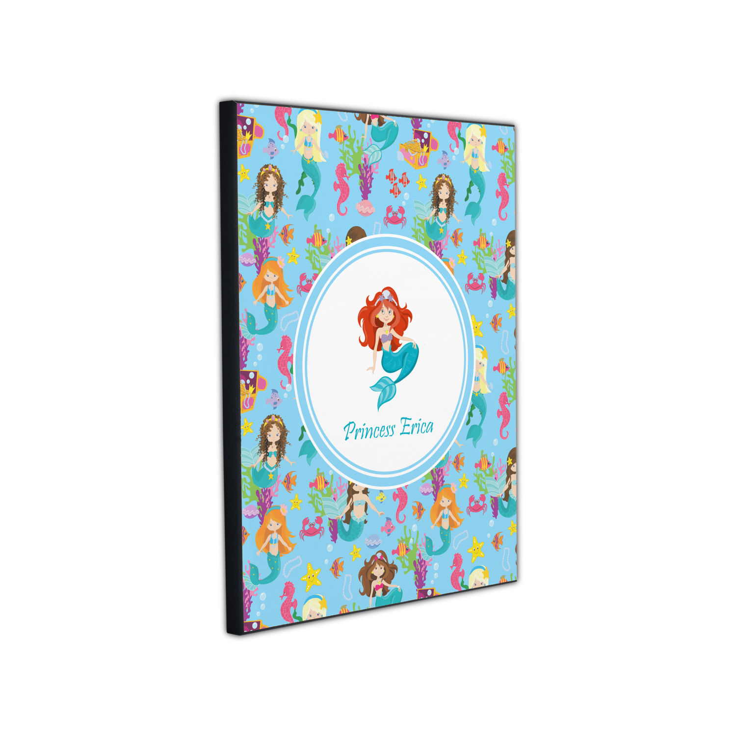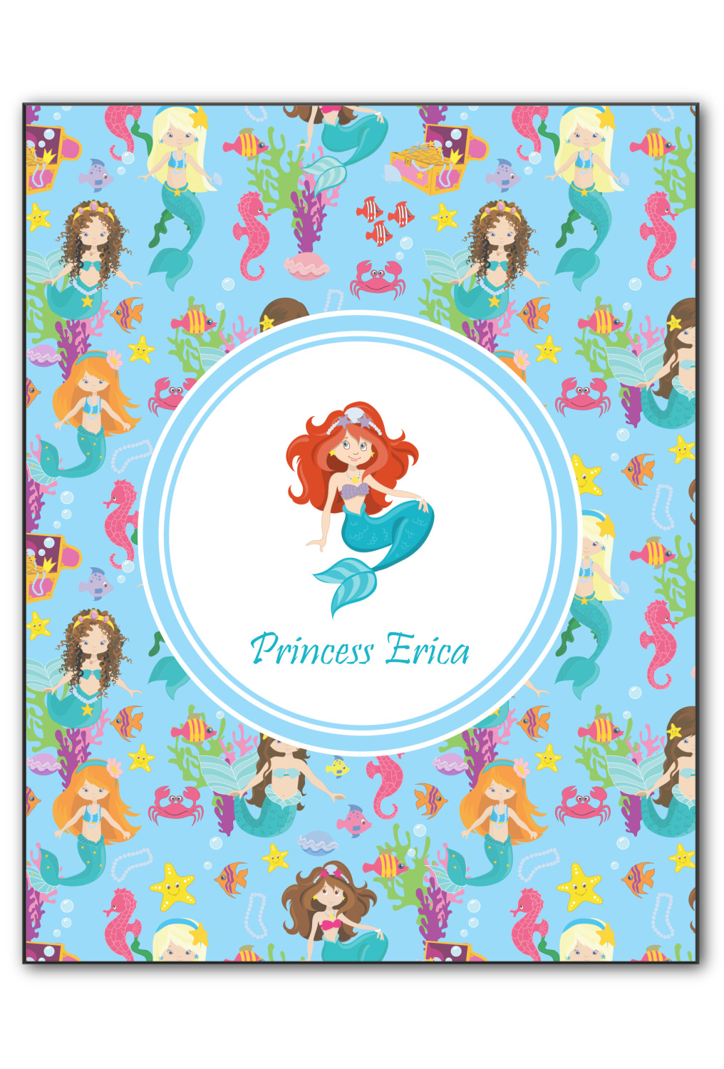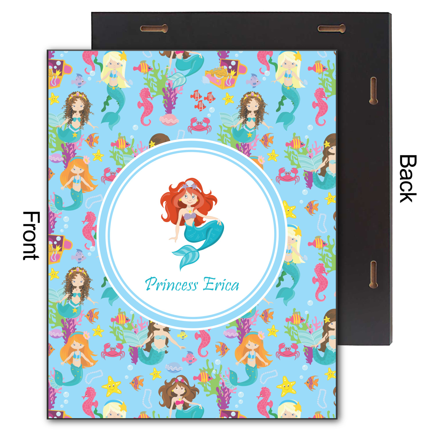 Love mermaids? This customize-able design has mermaids, sea creatures such as seahorses, fish, crabs, seahorses, oysters, seaweed and of course a treasure chest. We chose a soft blue to represent water for the background. You can change this to any color you desire. We have featured a mermaid in a round label, along with personalization under the mermaid graphic.