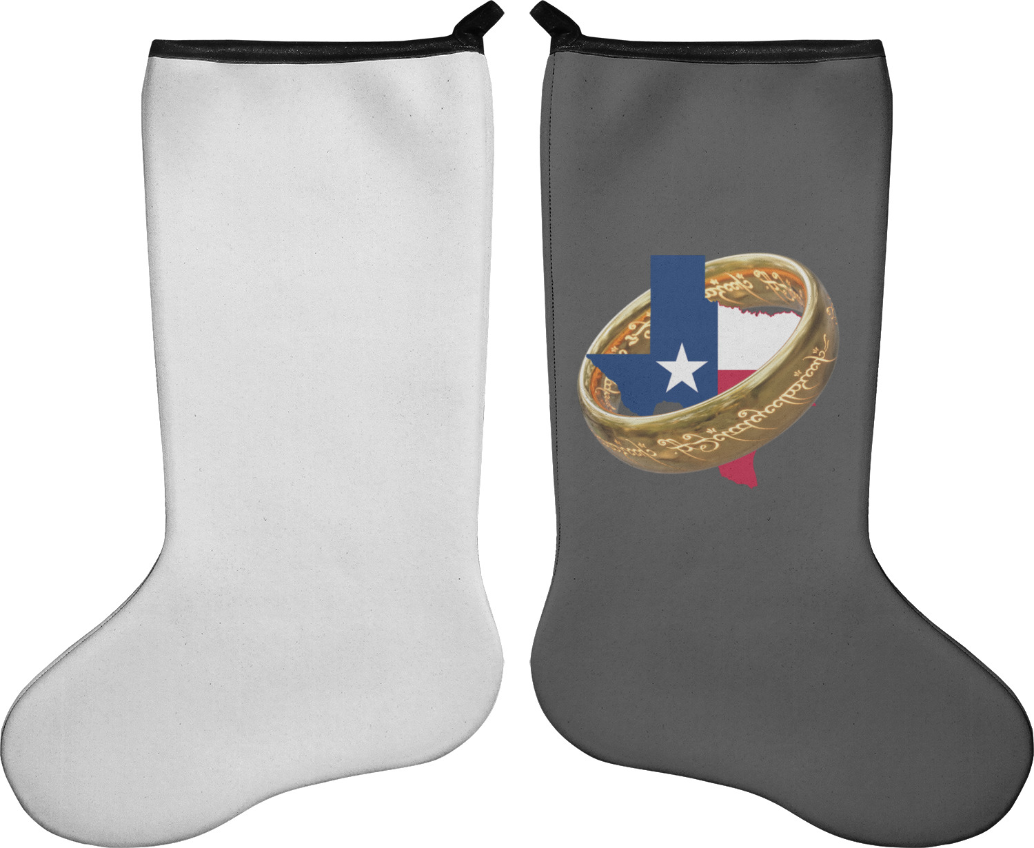 These 17" x 11" stockings are made of neoprene and have a black trim to give them a fantastic finished look. Your very own design is printed right onto the stocking, either single sided with white on the back or double sided where can use the same or different designs / patterns on the front and the back - the choice is yours. At the top of the stocking is a 2" loop for hanging.