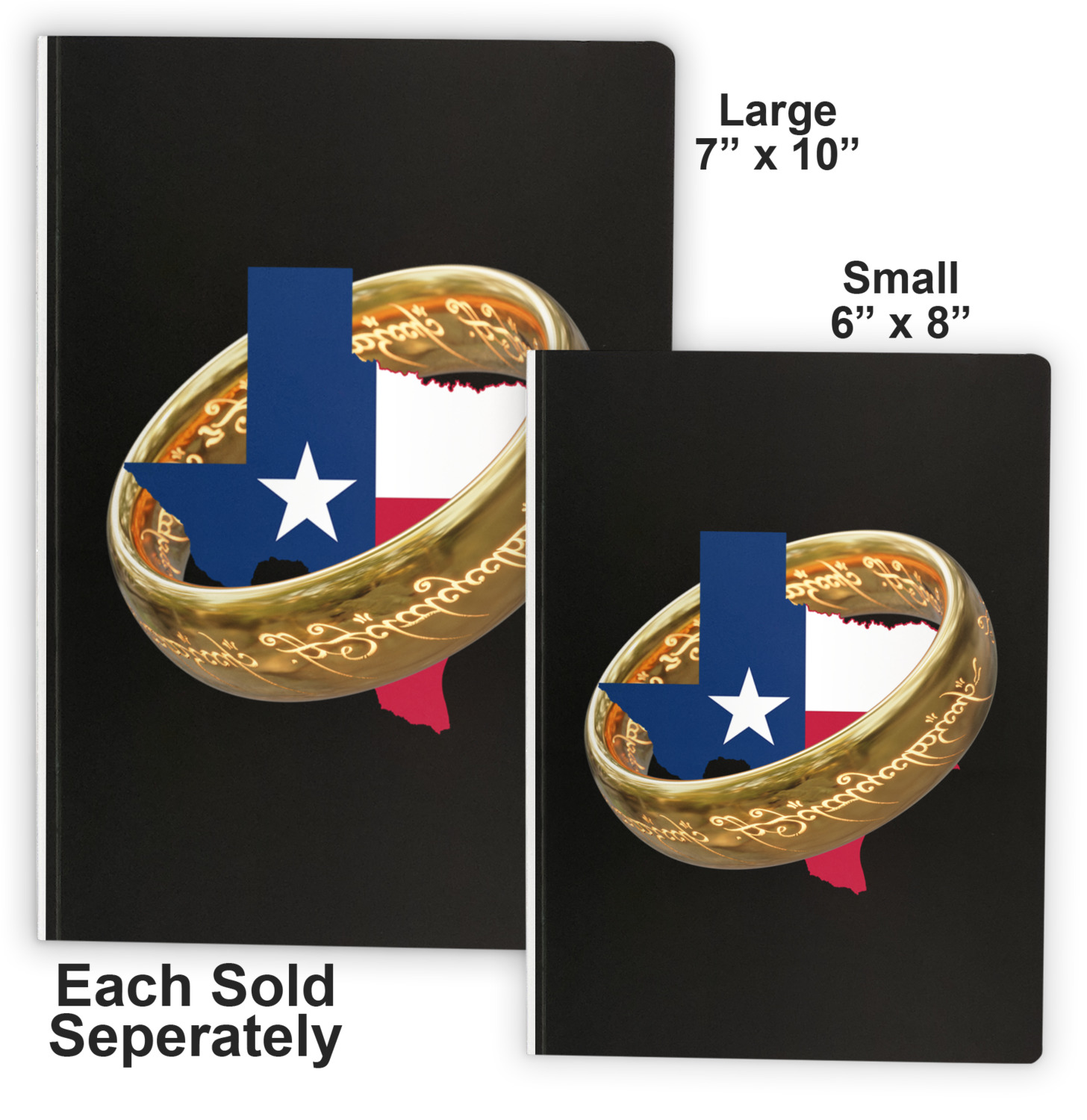 We offer these notebooks in two different sizes. The small notebook is 8" x 5.75", and fits snugly in purses or totes. The large notebook measures at 10" x 7.25", and can be carried in briefcases and backpacks.