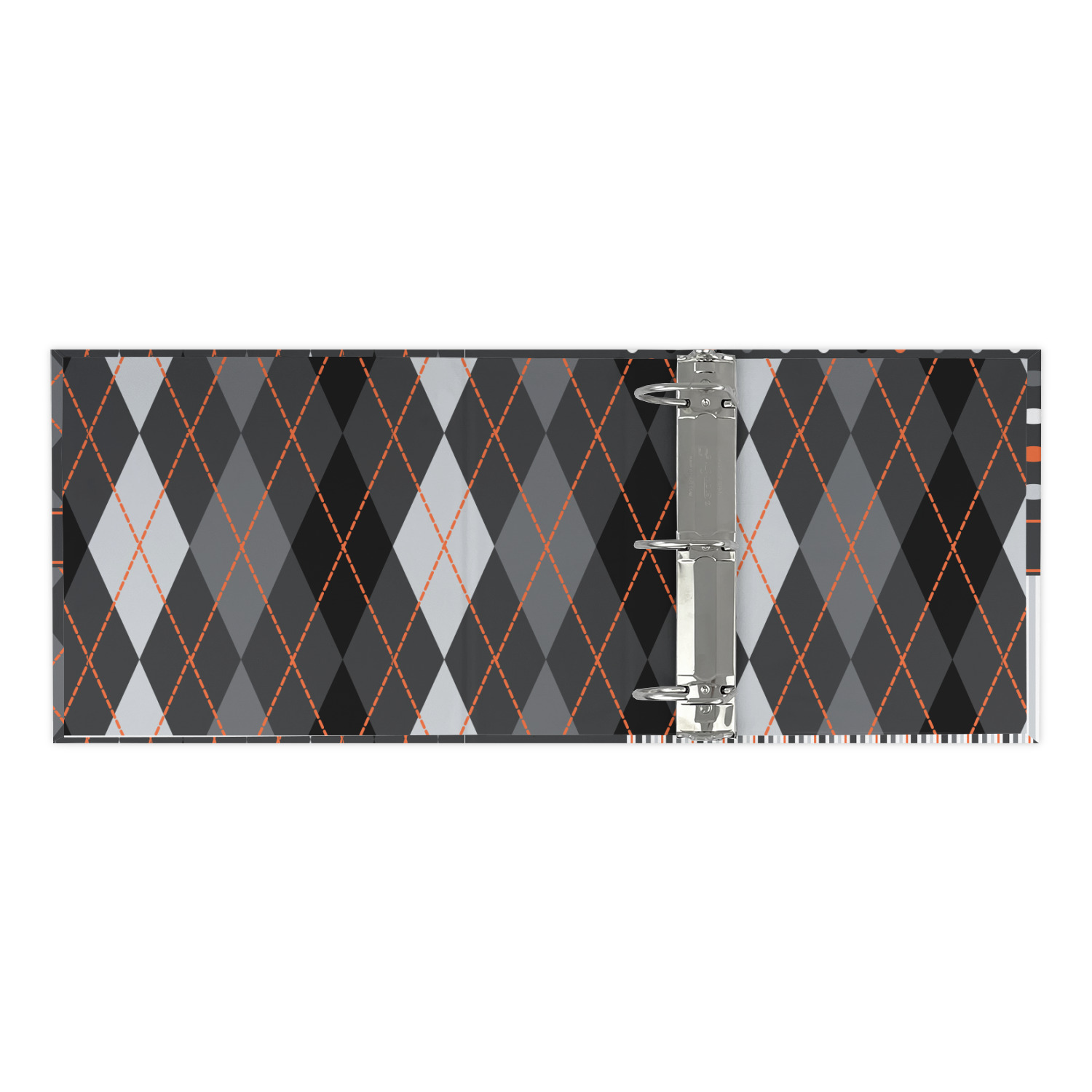 Made from a sturdy cardboard base with a full high quality canvas textured vinyl wrap with the design of your choice. Unlike our standard 3-ring binder with the full wrap design your artwork wraps from the front and back and into the inside of the binder.
