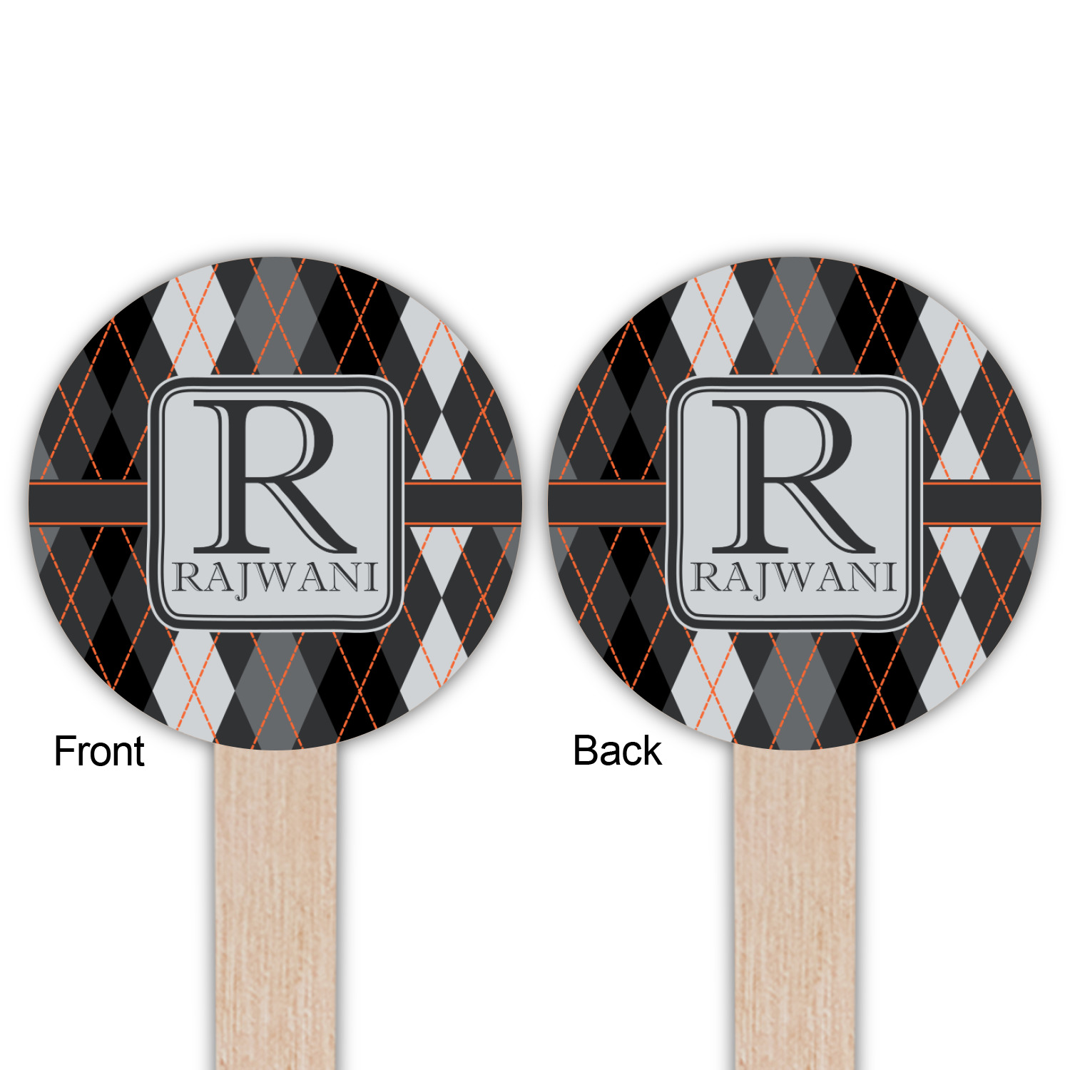 A wide charcoal gray band trimmed in orange divides the pattern to add interested and is used to highlight the slate grey square label. Add personalization of your choice.