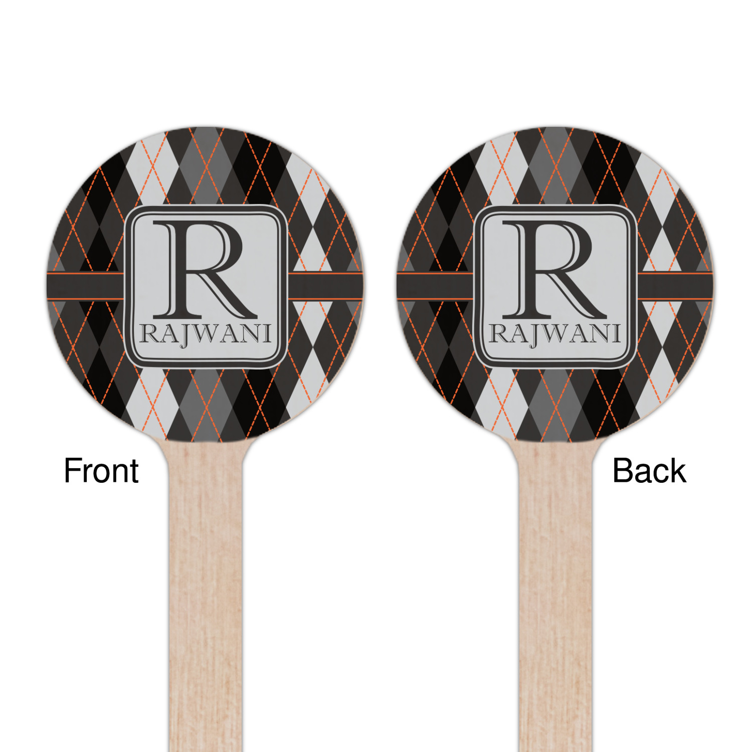 A wide charcoal gray band trimmed in orange divides the pattern to add interested and is used to highlight the slate grey square label. Add personalization of your choice.