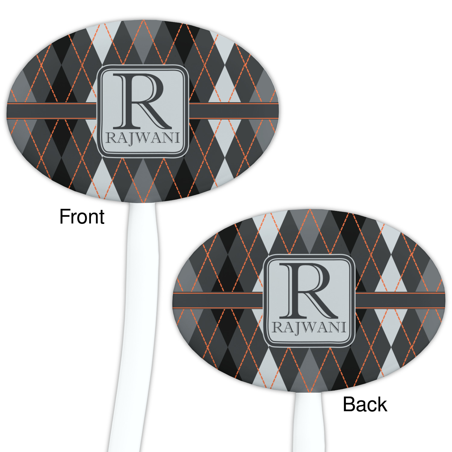 A wide charcoal gray band trimmed in orange divides the pattern to add interested and is used to highlight the slate grey square label. Add personalization of your choice.