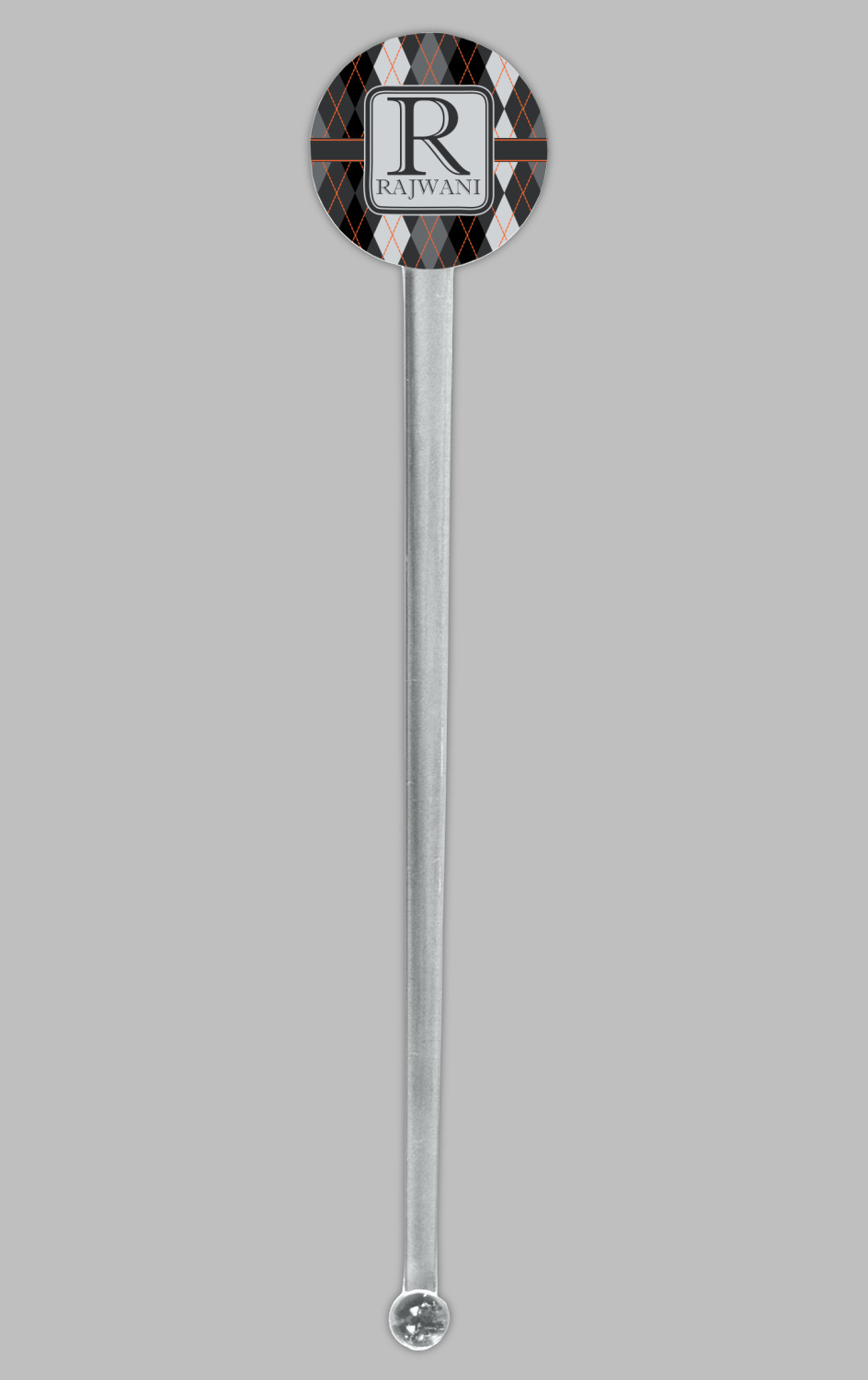 A wide charcoal gray band trimmed in orange divides the pattern to add interested and is used to highlight the slate grey square label. Add personalization of your choice.