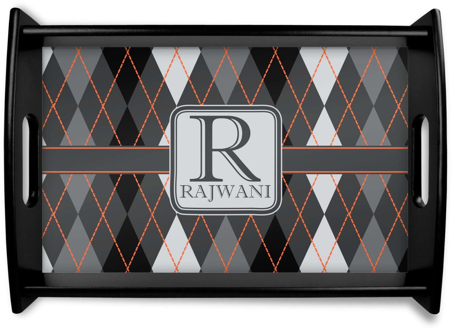 Monochromatic with a pop of color. This gorgeous harlequin pattern made from shades of gray creates the perfect backdrop to showcase the bold lines of orange. The design can go with just about anything. The grays will blend with any color and the orange will not overpower your design choices.