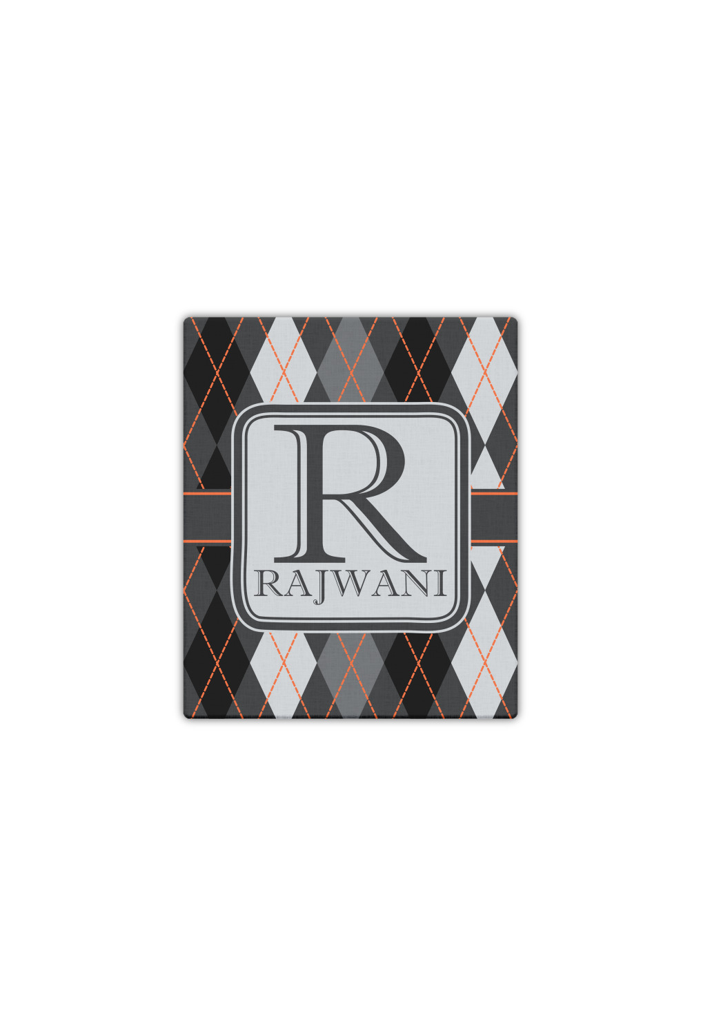 A wide charcoal gray band trimmed in orange divides the pattern to add interested and is used to highlight the slate grey square label. Add personalization of your choice.
