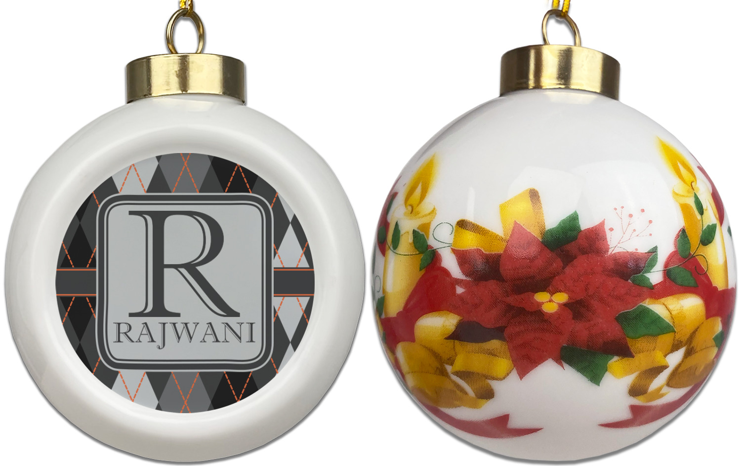 Our Christmas ornaments are a unique ceramic ball shape with a twist as it has a flat face to display your custom design! Select from one of our two design types - Christmas Tree or Poinsettia Garland - to adorn the curved back of your personal design. Each ornament measures 3H x 2.5W x 2D accompanied with a gold string accent for finishing touches to hang on your beautiful Christmas tree!
