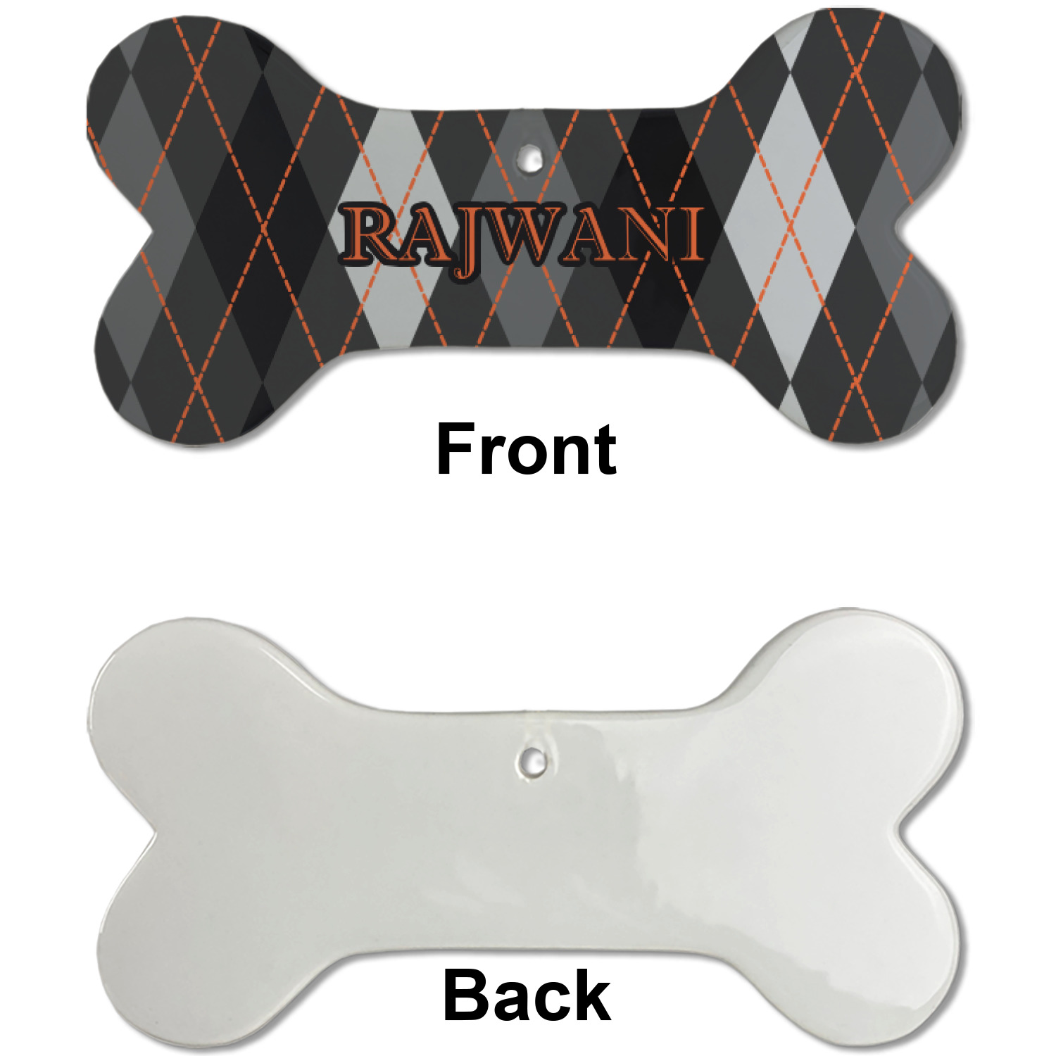 Our dog Christmas ornaments are a ceramic material with a bone-shaped structure hung horizontally. We offer two printing styles to personalize your furry friend's ornament! Choose a one-sided printing, perfect for wall decor, memorial accessory, or doghouse nameplate! Create a double-sided ornament perfect for adorning the Christmas tree. Each dog bone ornament is approximately 4.75" x 2.25" and is printed here in the USA.