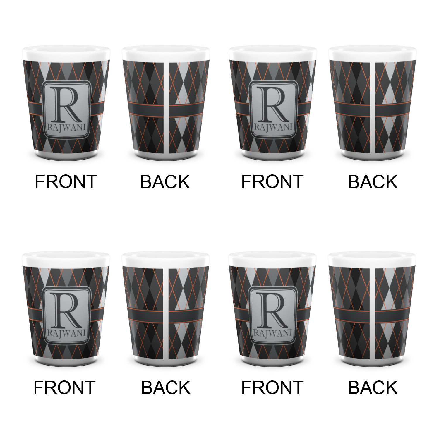 Made from ceramic these shot glasses are printed in full color with the design of your choice. These are a standard 1.5oz size and stand 2.25" tall. Available in a full white ceramic or a two-tone with a black color inside the shot glass. Buy a single or a set of 4, all of which can be designed separately to get you just what you want and need.