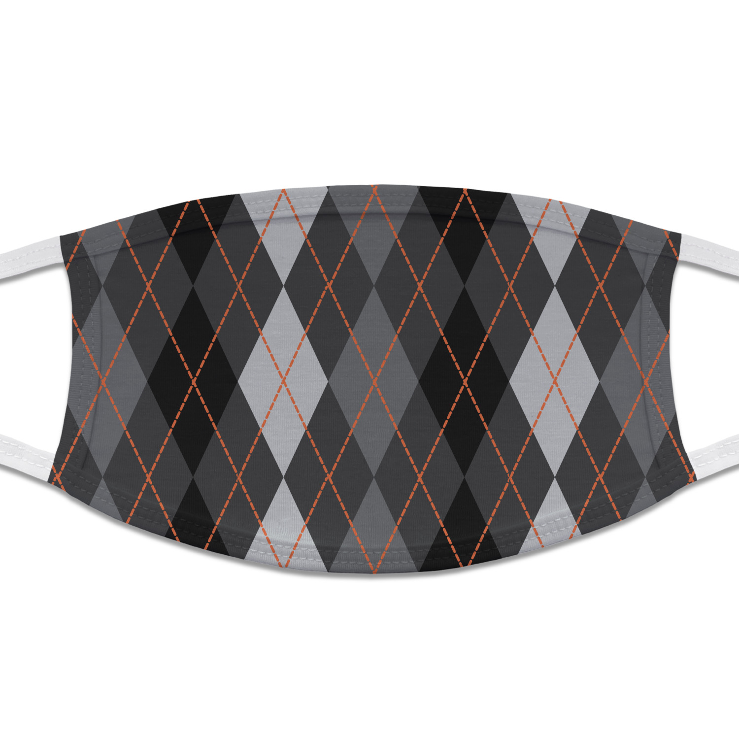 The masks are made from two layers of the soft jersey fabric. The outside layer will be printed with your design, while the inside layer is white. The body of the mask is trimmed and double stitched with the same jersey fabric. The masks are approximately 7 inches wide by 4.75 inches high