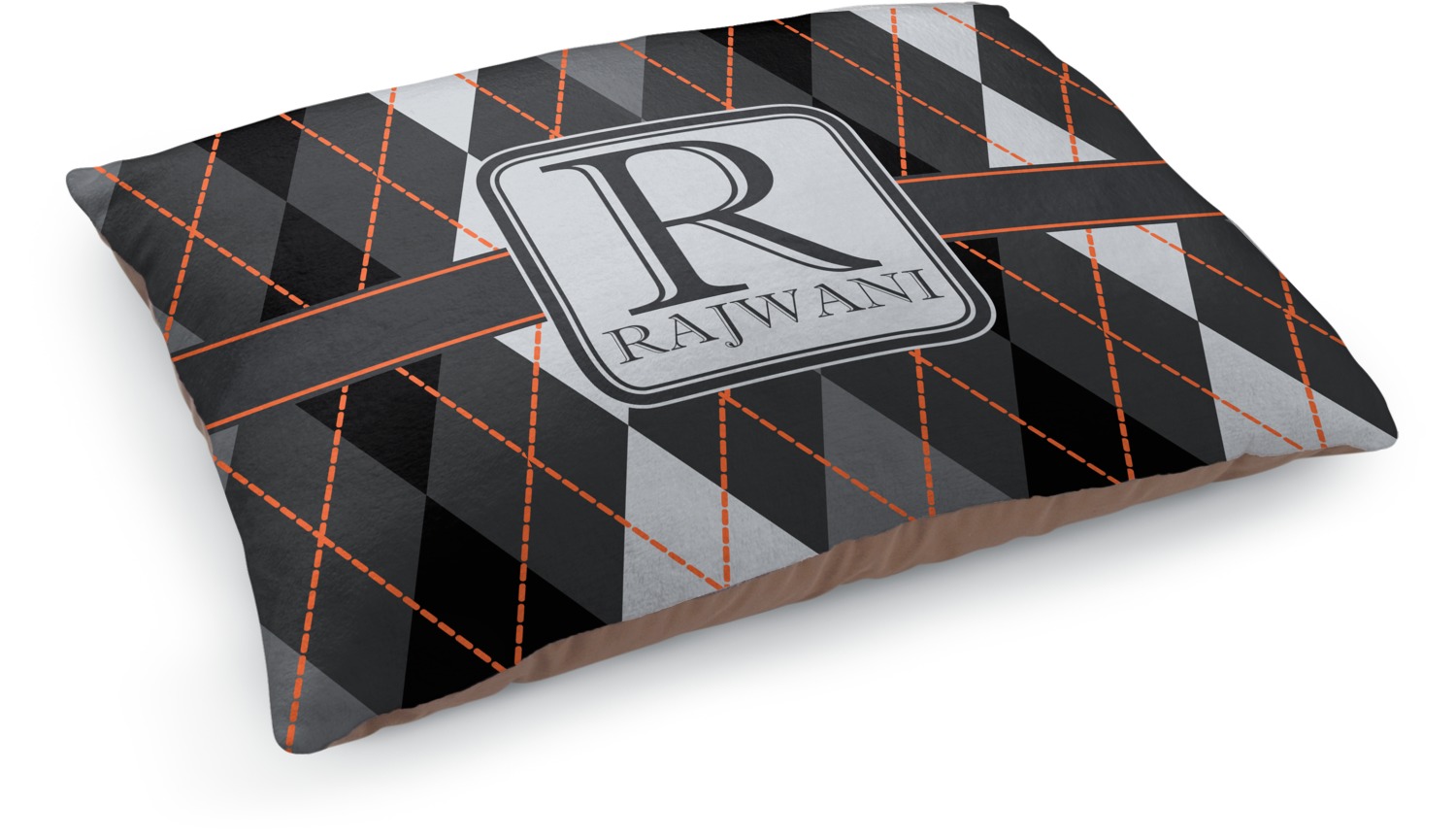 Monochromatic with a pop of color. This gorgeous harlequin pattern made from shades of gray creates the perfect backdrop to showcase the bold lines of orange. The design can go with just about anything. The grays will blend with any color and the orange will not overpower your design choices.