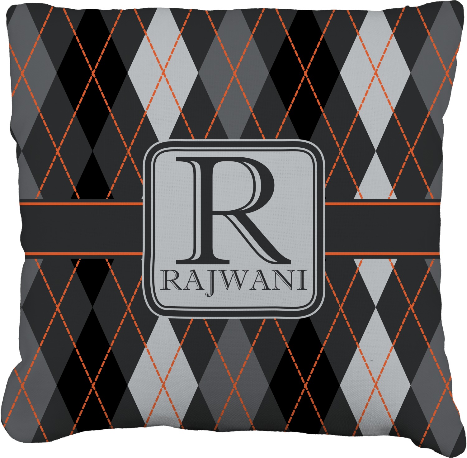 Monochromatic with a pop of color. This gorgeous harlequin pattern made from shades of gray creates the perfect backdrop to showcase the bold lines of orange. The design can go with just about anything. The grays will blend with any color and the orange will not overpower your design choices.