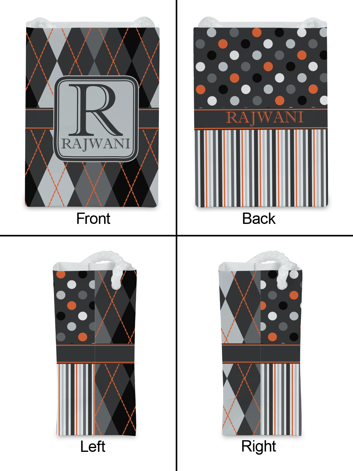 You can design a your gift bag by customizing one of our design templates. Our design studio enables you to customize your design - you can change any part of the design template. You can also upload a photo, logo or any image.