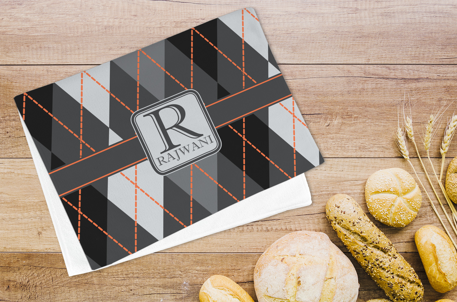 Monochromatic with a pop of color. This gorgeous harlequin pattern made from shades of gray creates the perfect backdrop to showcase the bold lines of orange. The design can go with just about anything. The grays will blend with any color and the orange will not overpower your design choices.