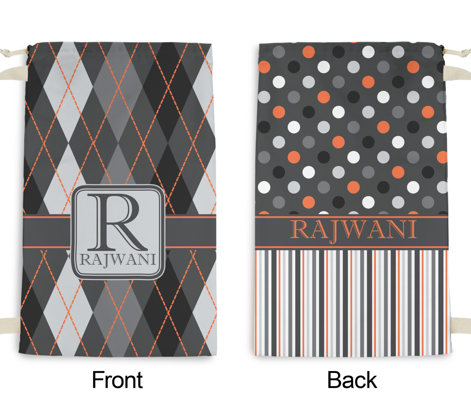 Carry your laundry in style with these customized laundry bags. Available in two sizes, featuring a natural colored woven strap and a cinch cord, these bags hold a lot of clothes or anything else you want to fit in them.