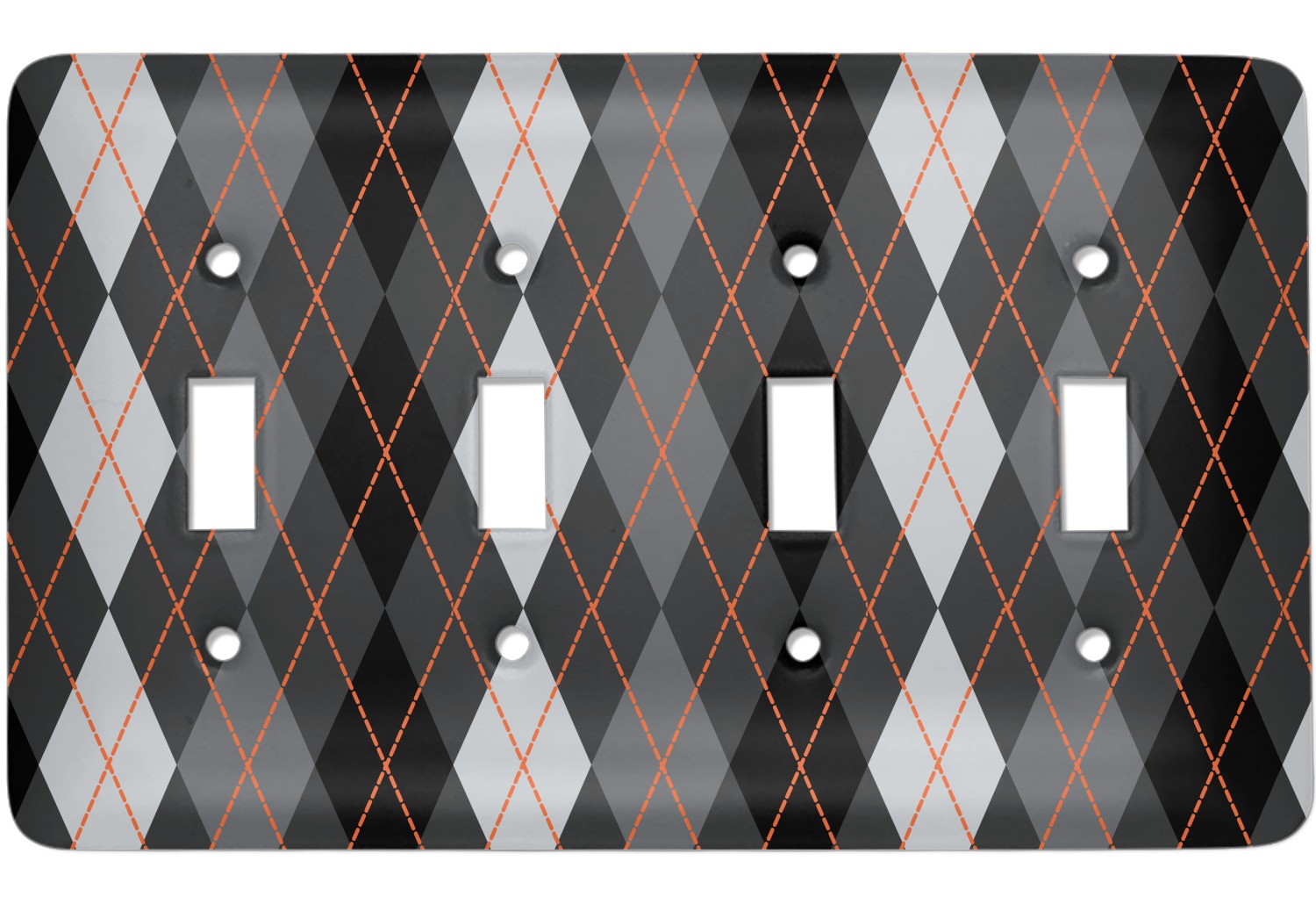 Monochromatic with a pop of color. This gorgeous harlequin pattern made from shades of gray creates the perfect backdrop to showcase the bold lines of orange. The design can go with just about anything. The grays will blend with any color and the orange will not overpower your design choices.