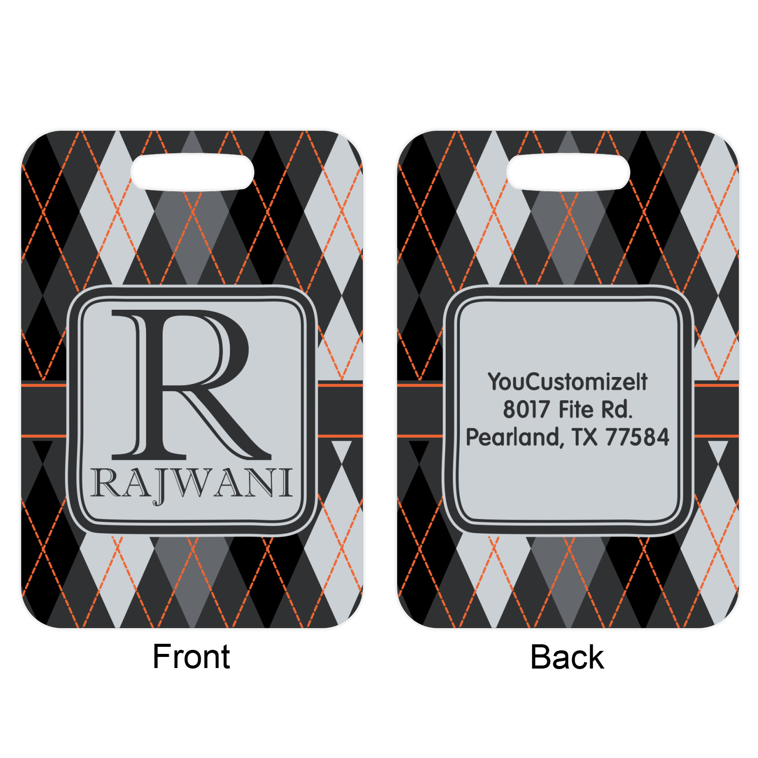 These metal luggage tags are printed on both sides; the front is printed with the design of your choice - and can be personalized with your name, name & initial or your monogram. The back can have as much or as little of your contact information as you desire - your name, your address, city, zip & state, you can also include your phone number and email address. Customize it exactly the way you want it!