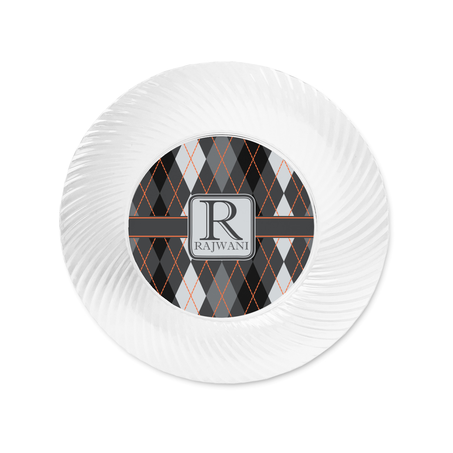 Made from a beautiful clear plastic plate as a base, your design is printed to the underside of the plate. The outside of the plate has a classic swirl texture to it for a high quality look and feel.