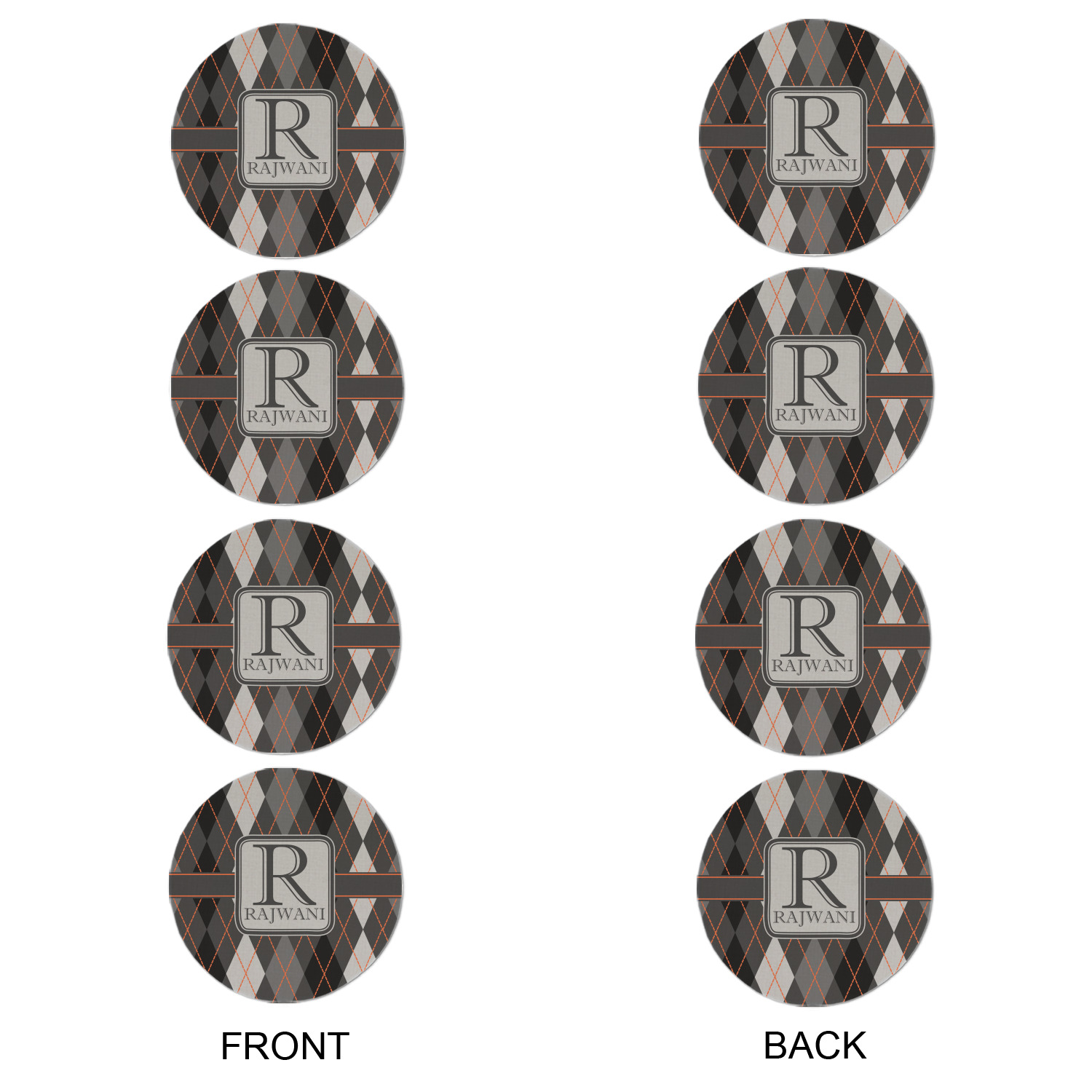 A wide charcoal gray band trimmed in orange divides the pattern to add interested and is used to highlight the slate grey square label. Add personalization of your choice.
