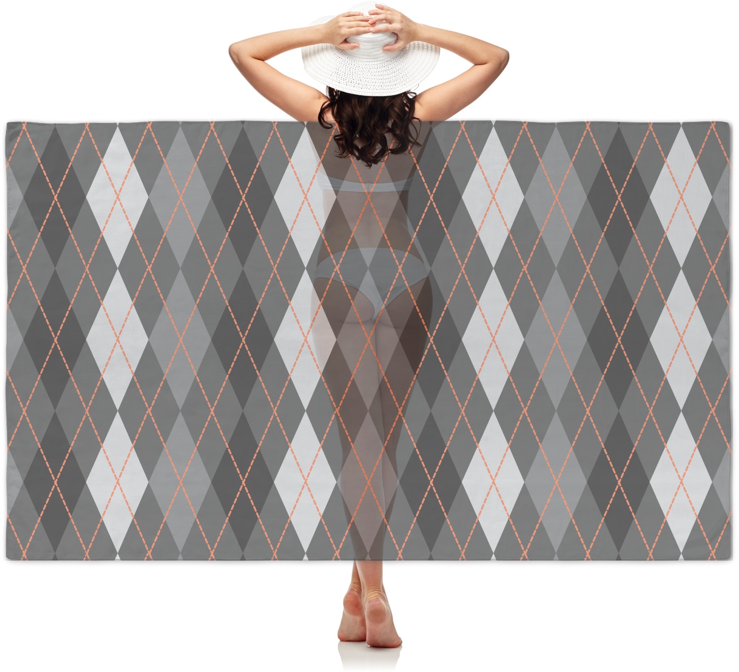 This sarong is 42" x 70" of personalized beauty. It is made of a soft polyester for comfort when against your skin. The material is sheer, so it serves well as a swimsuit cover-up or a shawl. There are so many uses for this wonderful product that you will be sure to find when it is in your hands.