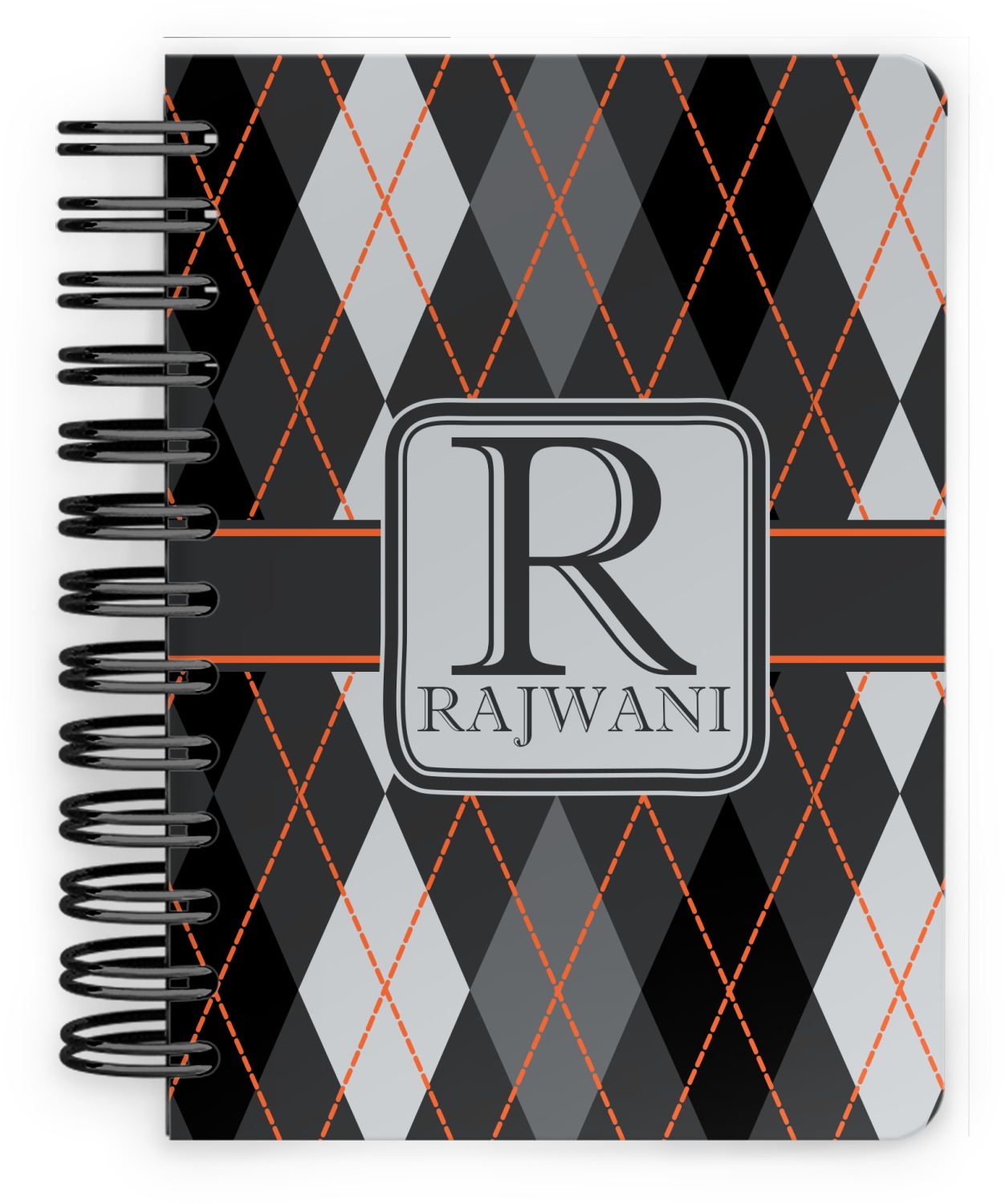 This spiral notebook includes 75 sheets of thick, ruled paper. The front and back of this custom notebook is made of a robust, laminate, plastic covering. We print your personalization on these two panels, underneath a glossy finish, which emphasizes the colors of your design. The two panels and the sheets of paper are held together by a sturdy, black coil. The paper within your bound notebook is perforated for easy, clean tearing.
