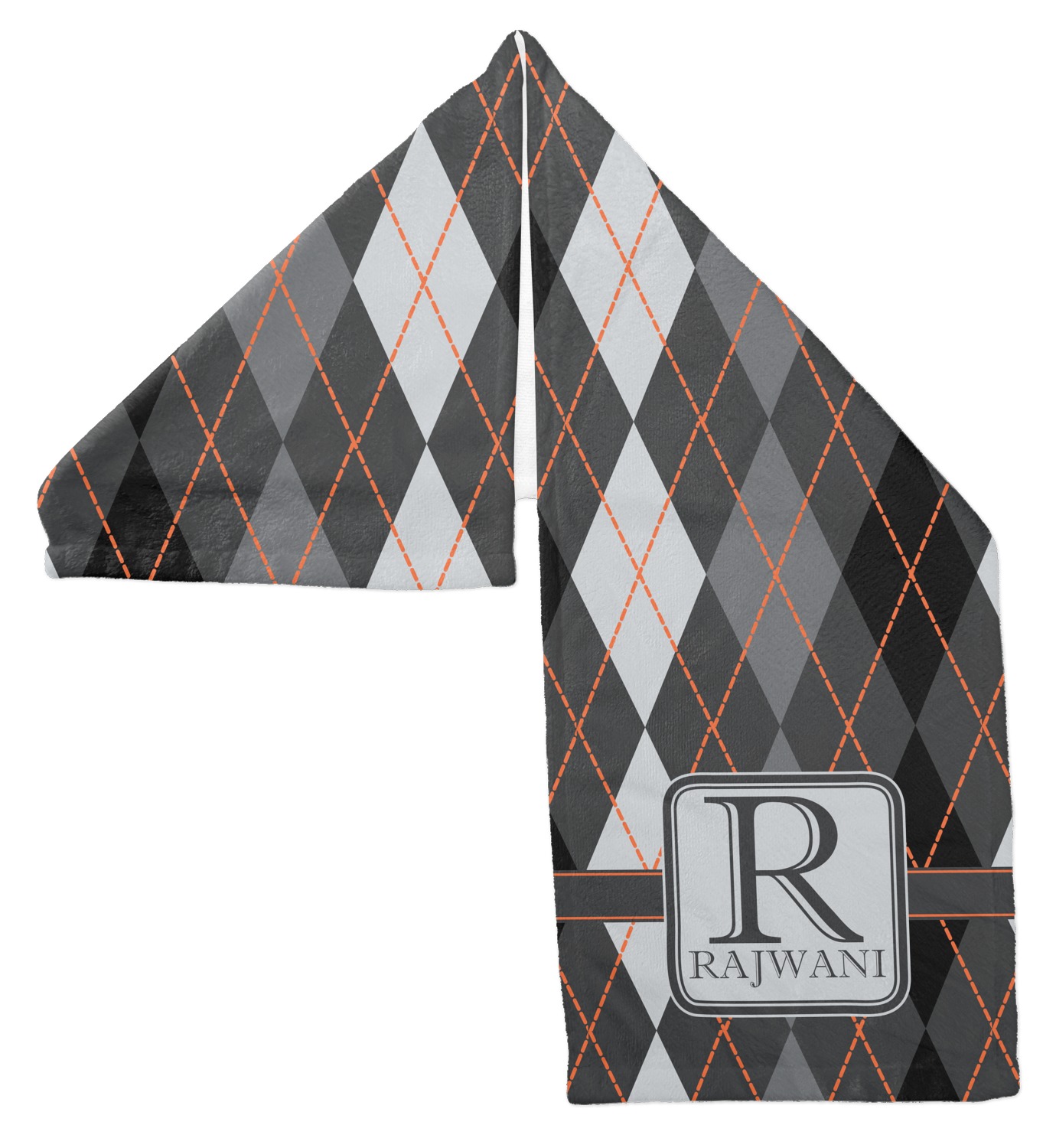 Monochromatic with a pop of color. This gorgeous harlequin pattern made from shades of gray creates the perfect backdrop to showcase the bold lines of orange. The design can go with just about anything. The grays will blend with any color and the orange will not overpower your design choices.
