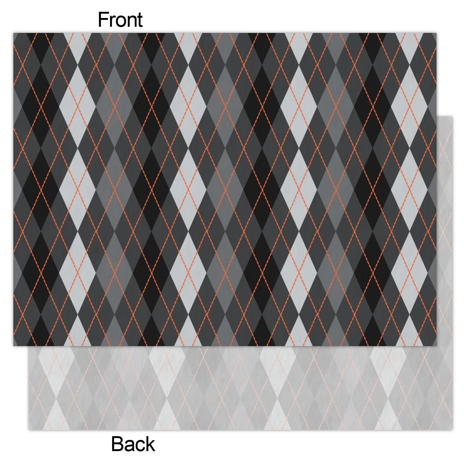 Monochromatic with a pop of color. This gorgeous harlequin pattern made from shades of gray creates the perfect backdrop to showcase the bold lines of orange. The design can go with just about anything. The grays will blend with any color and the orange will not overpower your design choices.