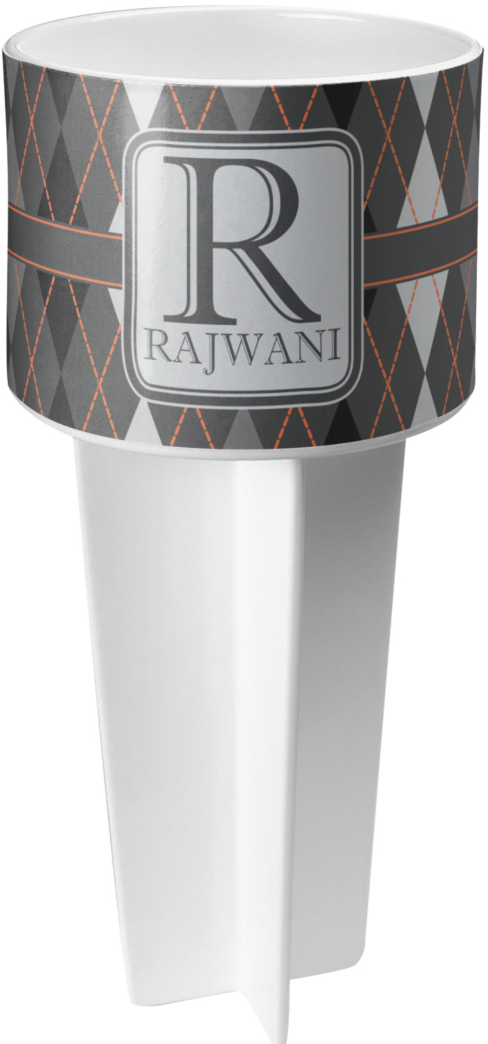 This cup holder has a large stake at its bottom that anchors it to the sand or ground below, while the cup holder rests above the stake. The entire drink holder is made of durable plastic and displays your customization around the cup holder portion. We sell these personalized beach spikers in two different colors: black and white.