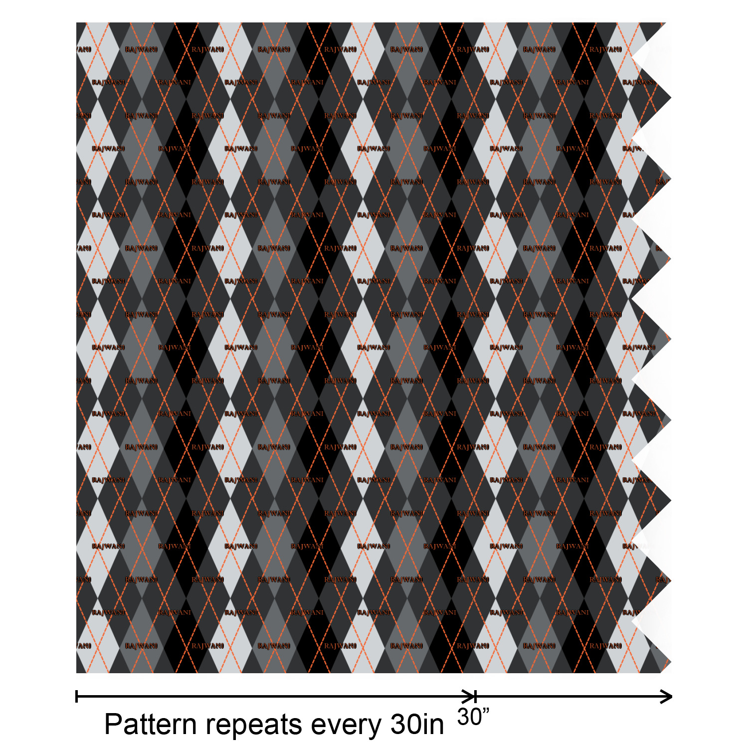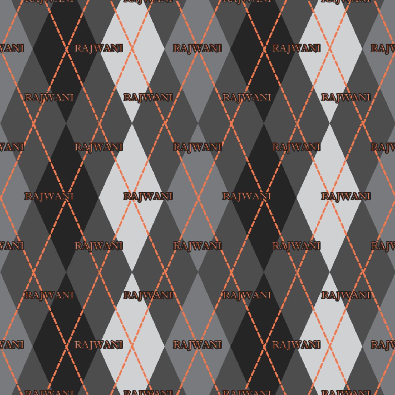 Monochromatic with a pop of color. This gorgeous harlequin pattern made from shades of gray creates the perfect backdrop to showcase the bold lines of orange. The design can go with just about anything. The grays will blend with any color and the orange will not overpower your design choices.