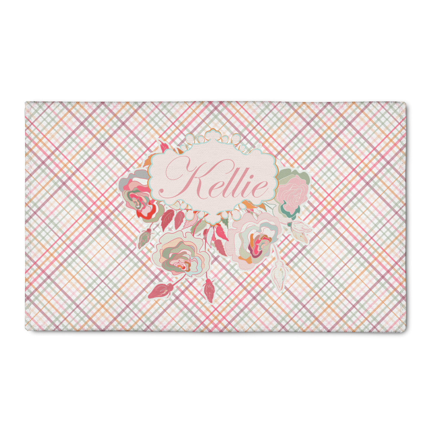 To make it really feminine, we chose a matching floral label that coordinates perfectly with the modern plaid. We chose to use a name personalization in our crown jewels font. We think this is a beautiful elegant design.