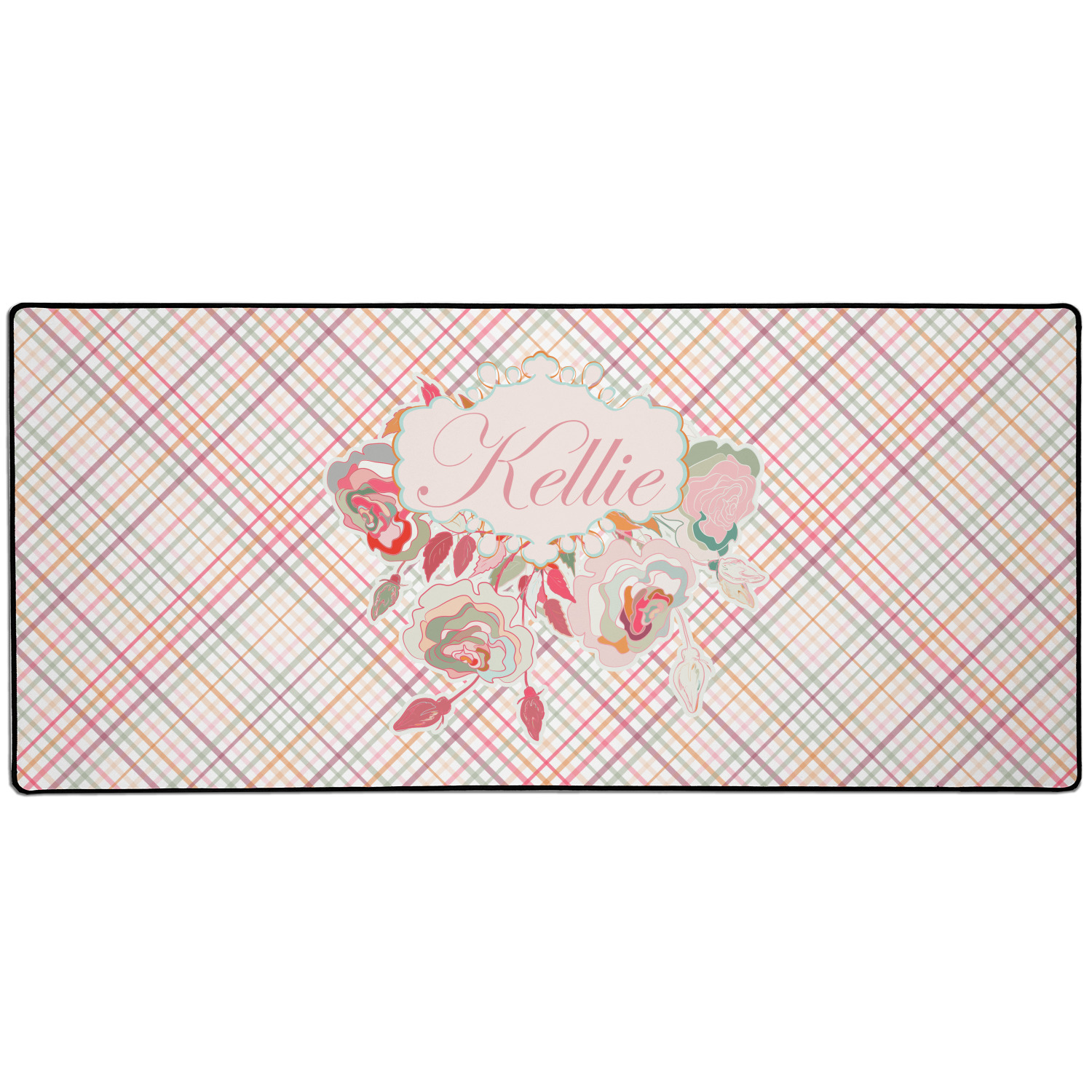 To make it really feminine, we chose a matching floral label that coordinates perfectly with the modern plaid. We chose to use a name personalization in our crown jewels font. We think this is a beautiful elegant design.