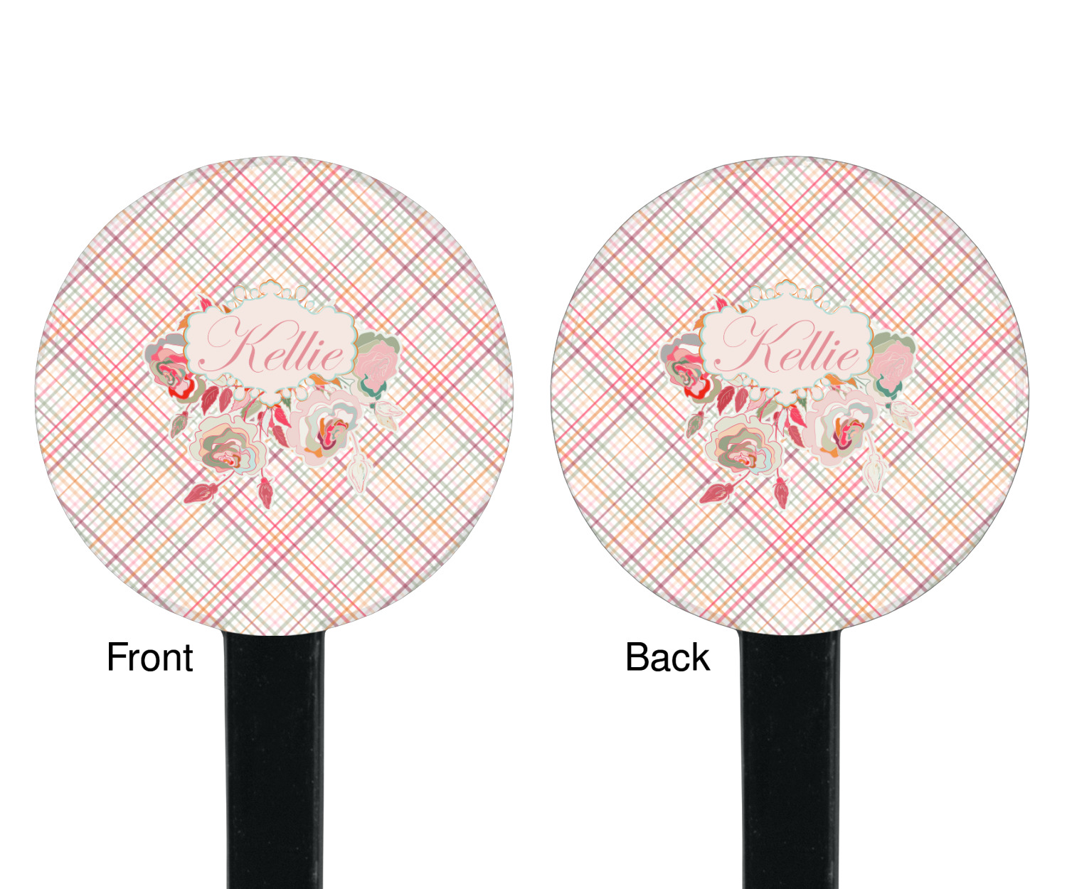 To make it really feminine, we chose a matching floral label that coordinates perfectly with the modern plaid. We chose to use a name personalization in our crown jewels font. We think this is a beautiful elegant design.