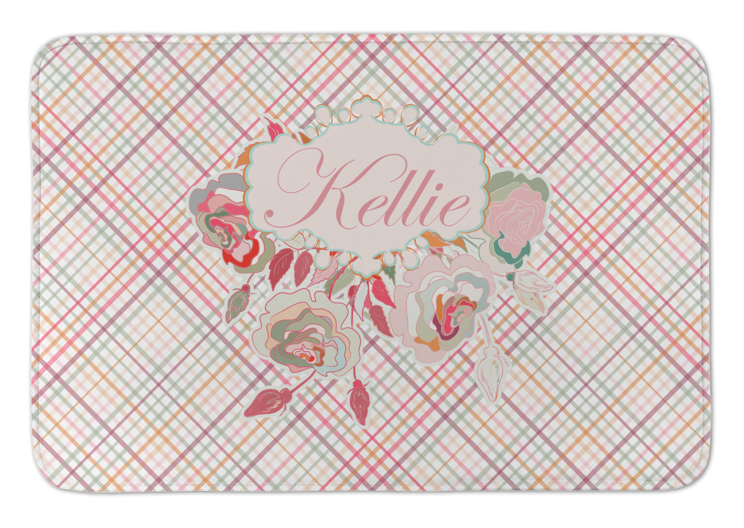 To make it really feminine, we chose a matching floral label that coordinates perfectly with the modern plaid. We chose to use a name personalization in our crown jewels font. We think this is a beautiful elegant design.