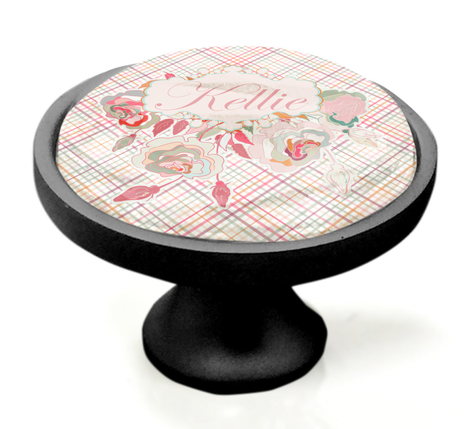 To make it really feminine, we chose a matching floral label that coordinates perfectly with the modern plaid. We chose to use a name personalization in our crown jewels font. We think this is a beautiful elegant design.