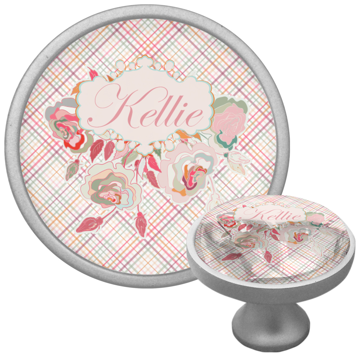 To make it really feminine, we chose a matching floral label that coordinates perfectly with the modern plaid. We chose to use a name personalization in our crown jewels font. We think this is a beautiful elegant design.