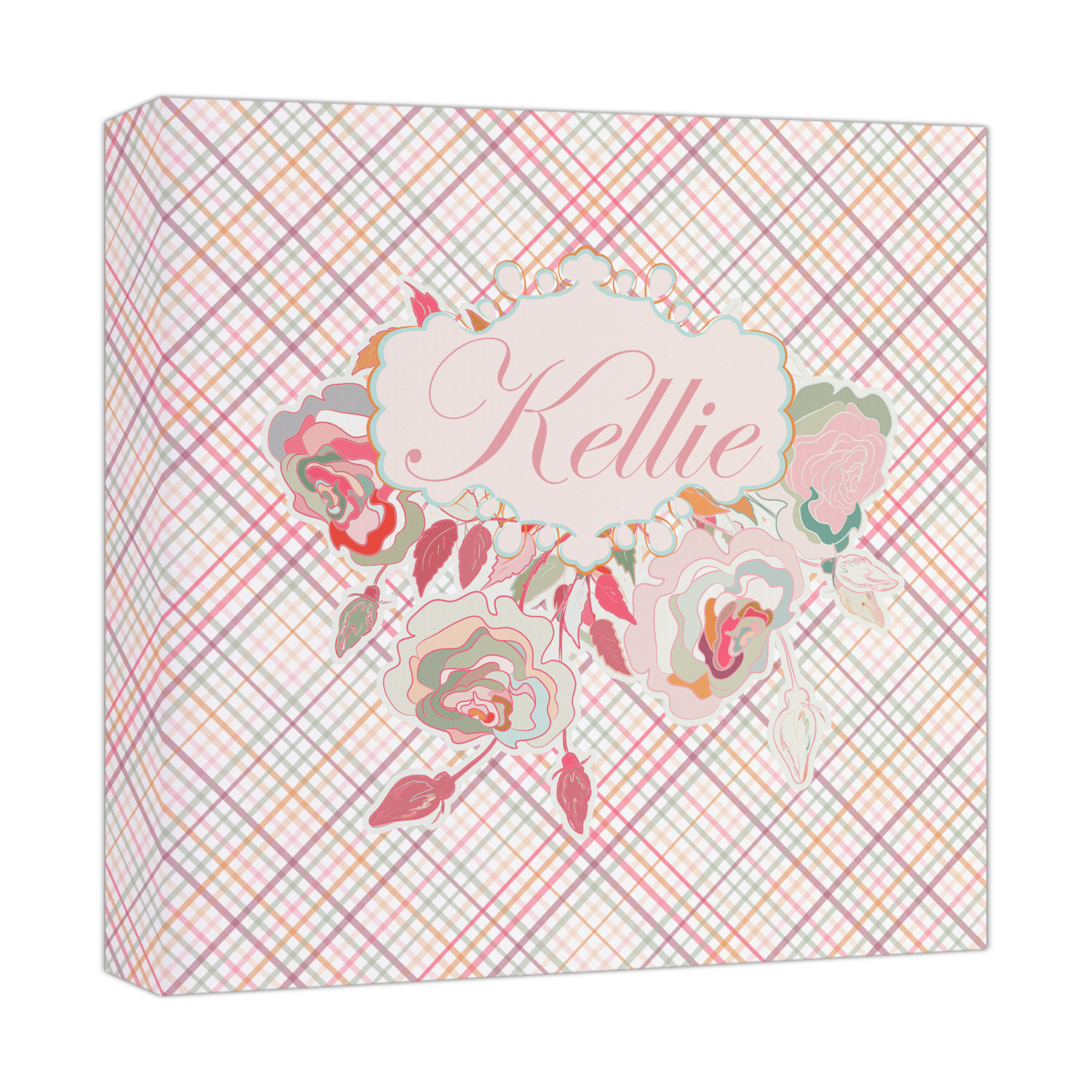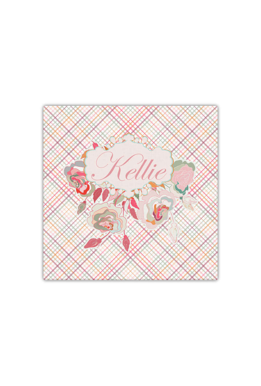 To make it really feminine, we chose a matching floral label that coordinates perfectly with the modern plaid. We chose to use a name personalization in our crown jewels font. We think this is a beautiful elegant design.