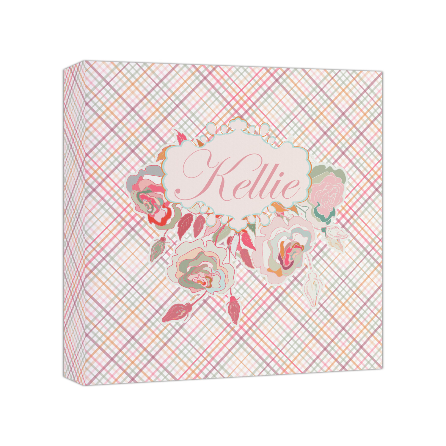 To make it really feminine, we chose a matching floral label that coordinates perfectly with the modern plaid. We chose to use a name personalization in our crown jewels font. We think this is a beautiful elegant design.