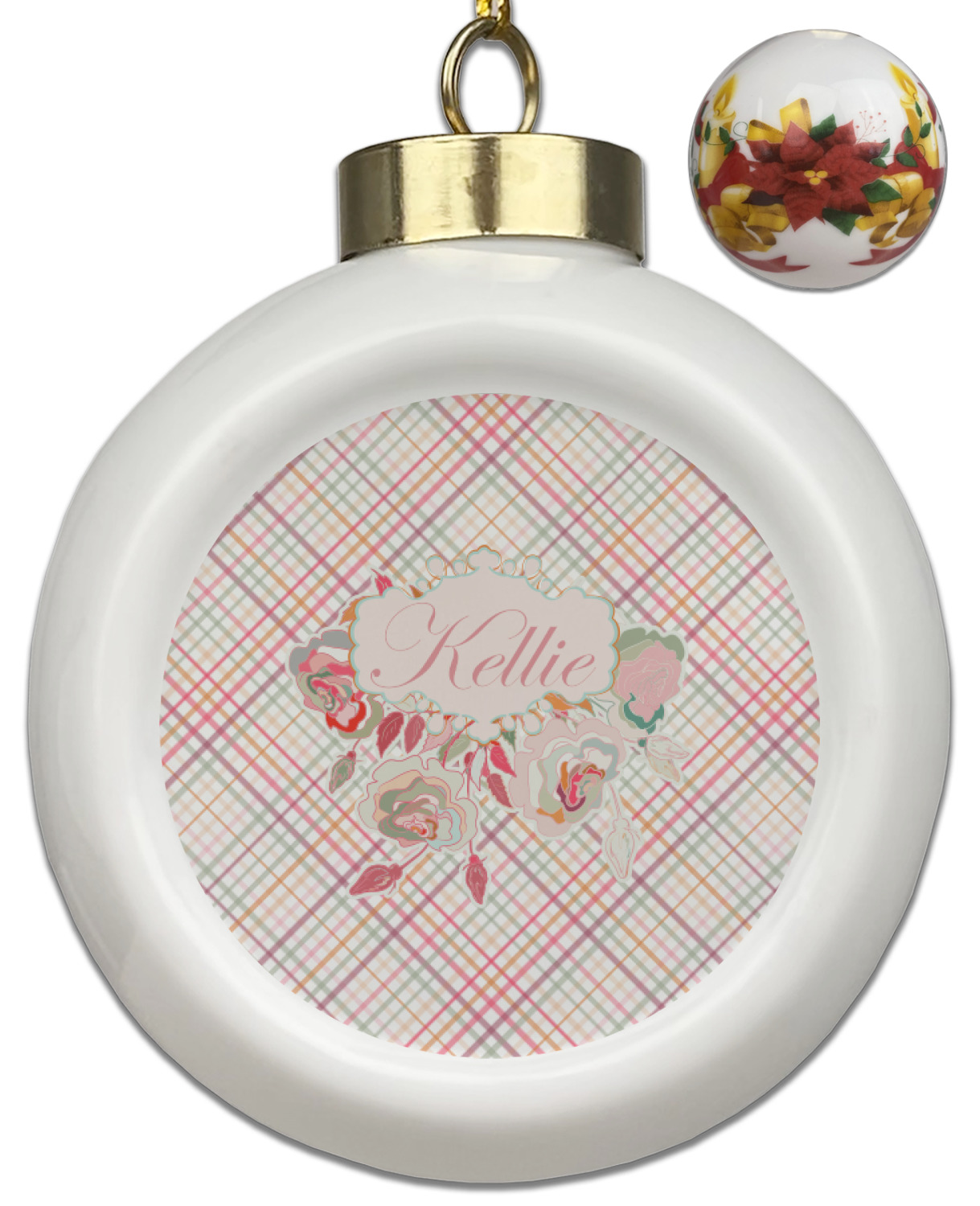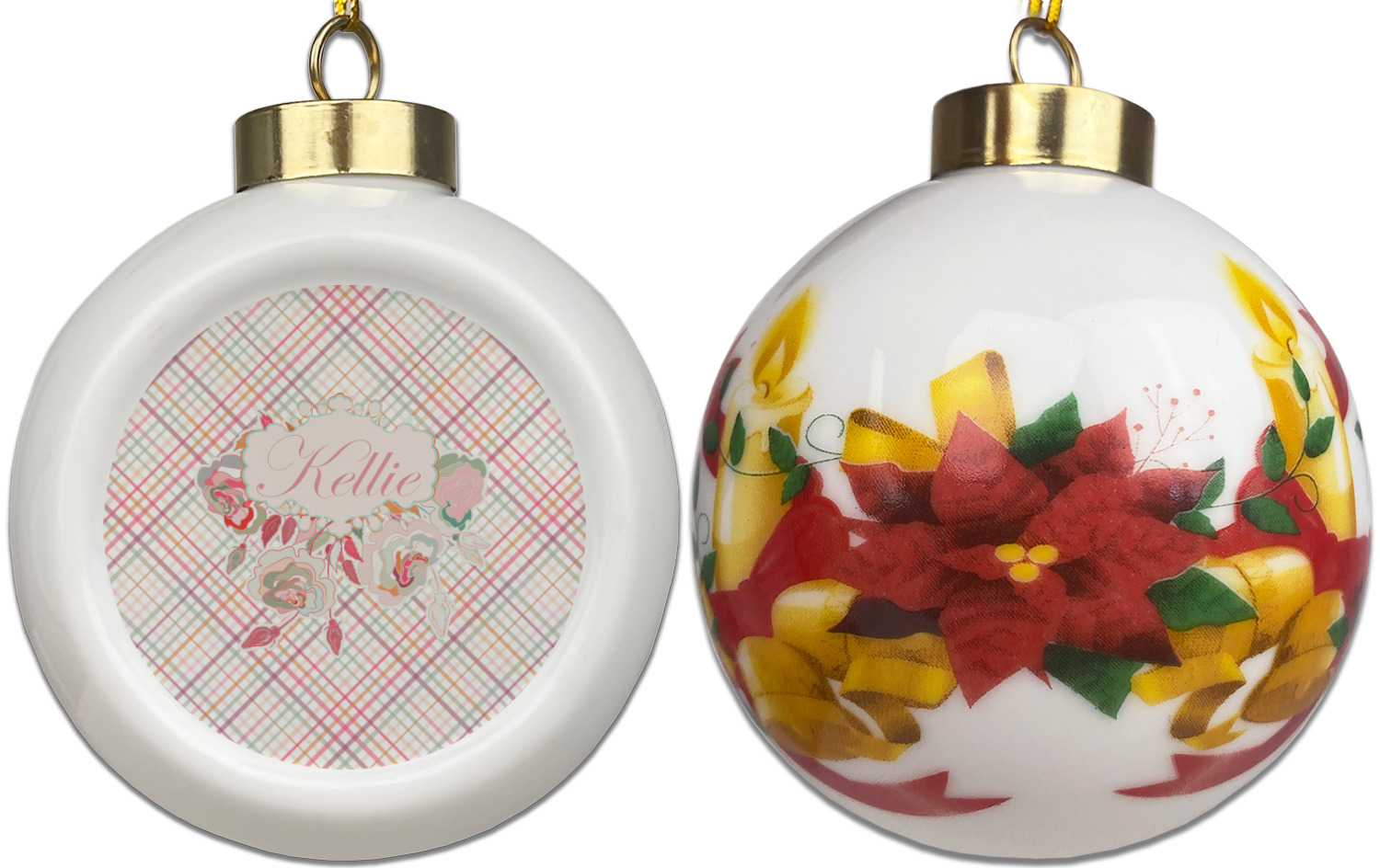 Our Christmas ornaments are a unique ceramic ball shape with a twist as it has a flat face to display your custom design! Select from one of our two design types - Christmas Tree or Poinsettia Garland - to adorn the curved back of your personal design. Each ornament measures 3H x 2.5W x 2D accompanied with a gold string accent for finishing touches to hang on your beautiful Christmas tree!