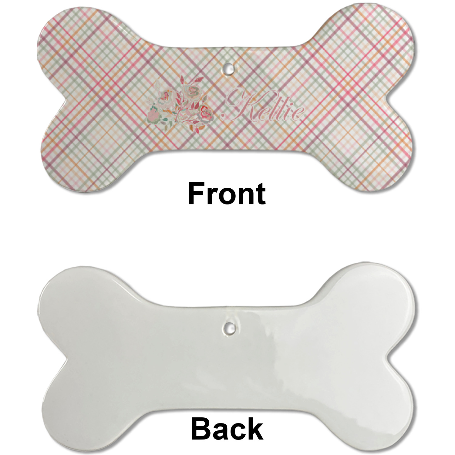 Our dog Christmas ornaments are a ceramic material with a bone-shaped structure hung horizontally. We offer two printing styles to personalize your furry friend's ornament! Choose a one-sided printing, perfect for wall decor, memorial accessory, or doghouse nameplate! Create a double-sided ornament perfect for adorning the Christmas tree. Each dog bone ornament is approximately 4.75" x 2.25" and is printed here in the USA.