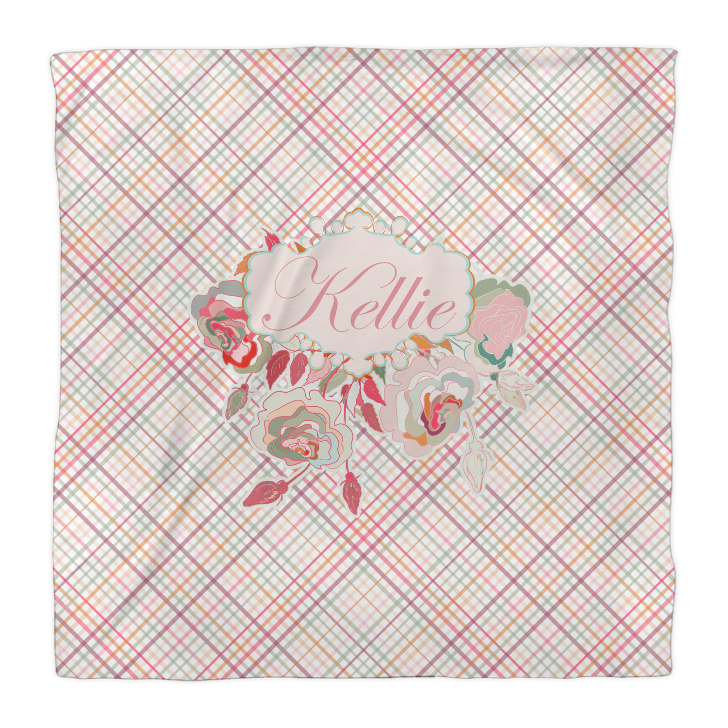 To make it really feminine, we chose a matching floral label that coordinates perfectly with the modern plaid. We chose to use a name personalization in our crown jewels font. We think this is a beautiful elegant design.
