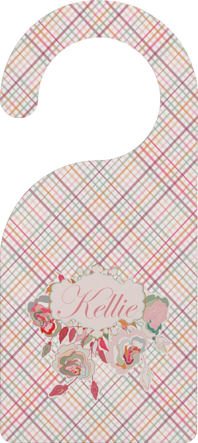 To make it really feminine, we chose a matching floral label that coordinates perfectly with the modern plaid. We chose to use a name personalization in our crown jewels font. We think this is a beautiful elegant design.