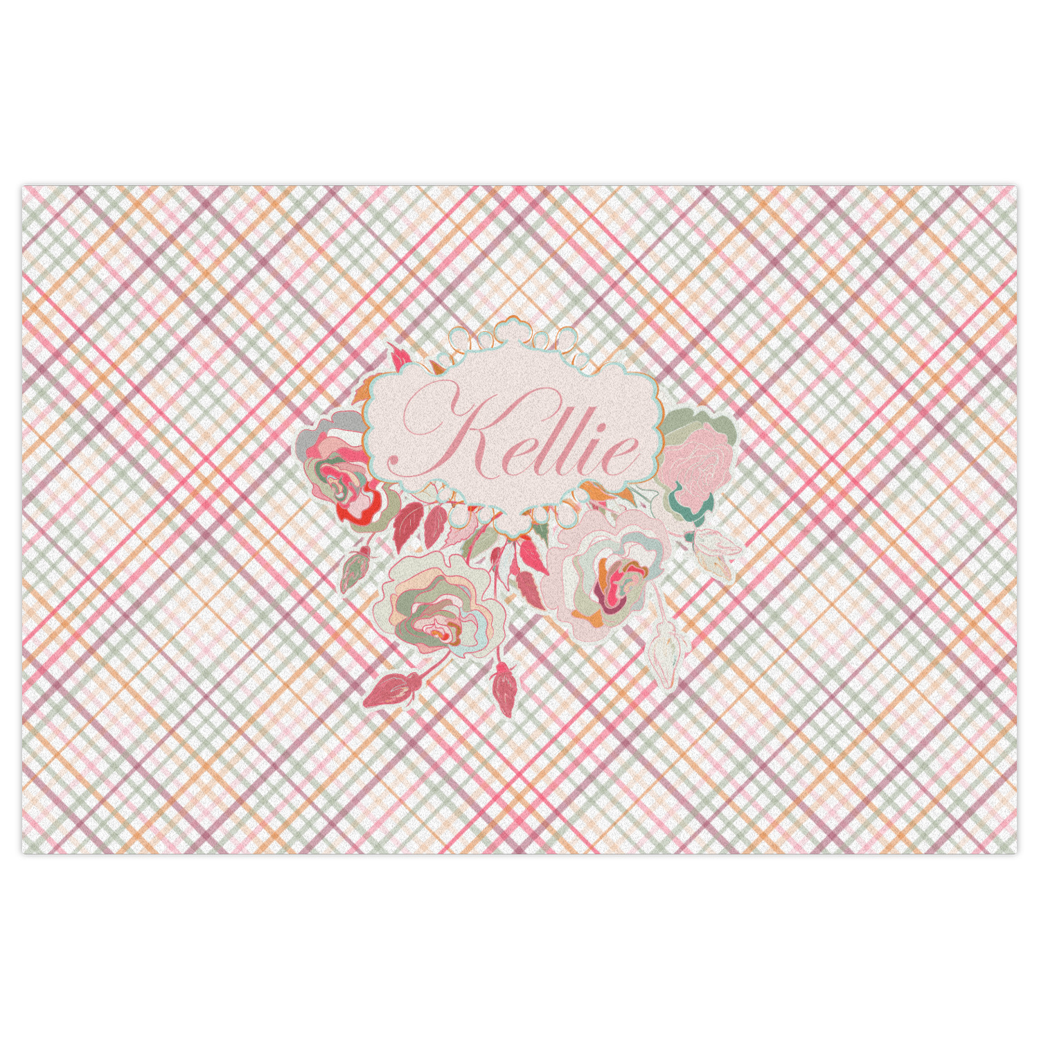 To make it really feminine, we chose a matching floral label that coordinates perfectly with the modern plaid. We chose to use a name personalization in our crown jewels font. We think this is a beautiful elegant design.