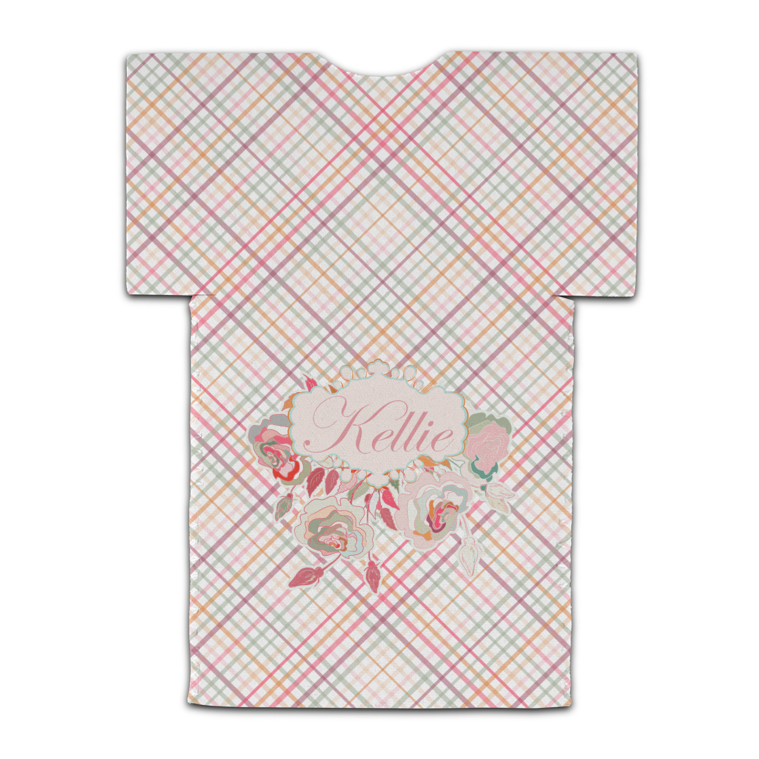 To make it really feminine, we chose a matching floral label that coordinates perfectly with the modern plaid. We chose to use a name personalization in our crown jewels font. We think this is a beautiful elegant design.