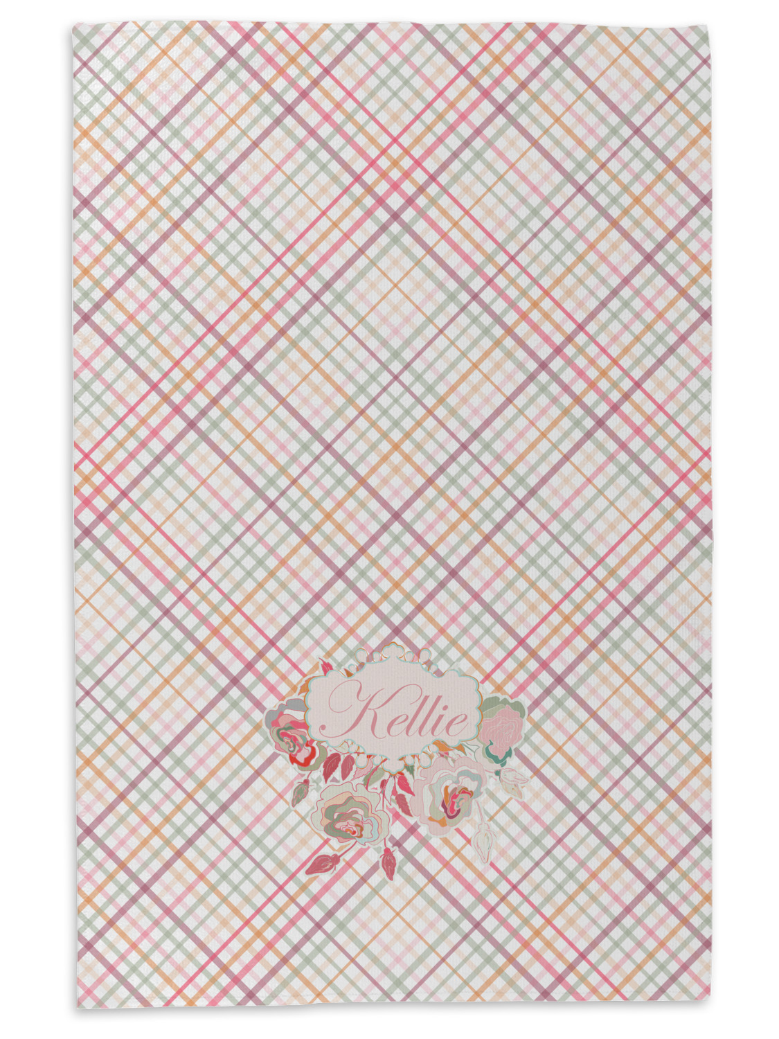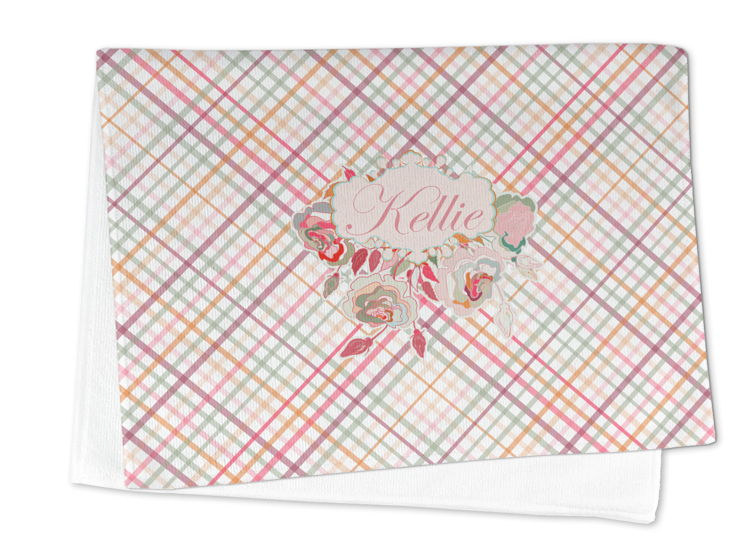 To make it really feminine, we chose a matching floral label that coordinates perfectly with the modern plaid. We chose to use a name personalization in our crown jewels font. We think this is a beautiful elegant design.