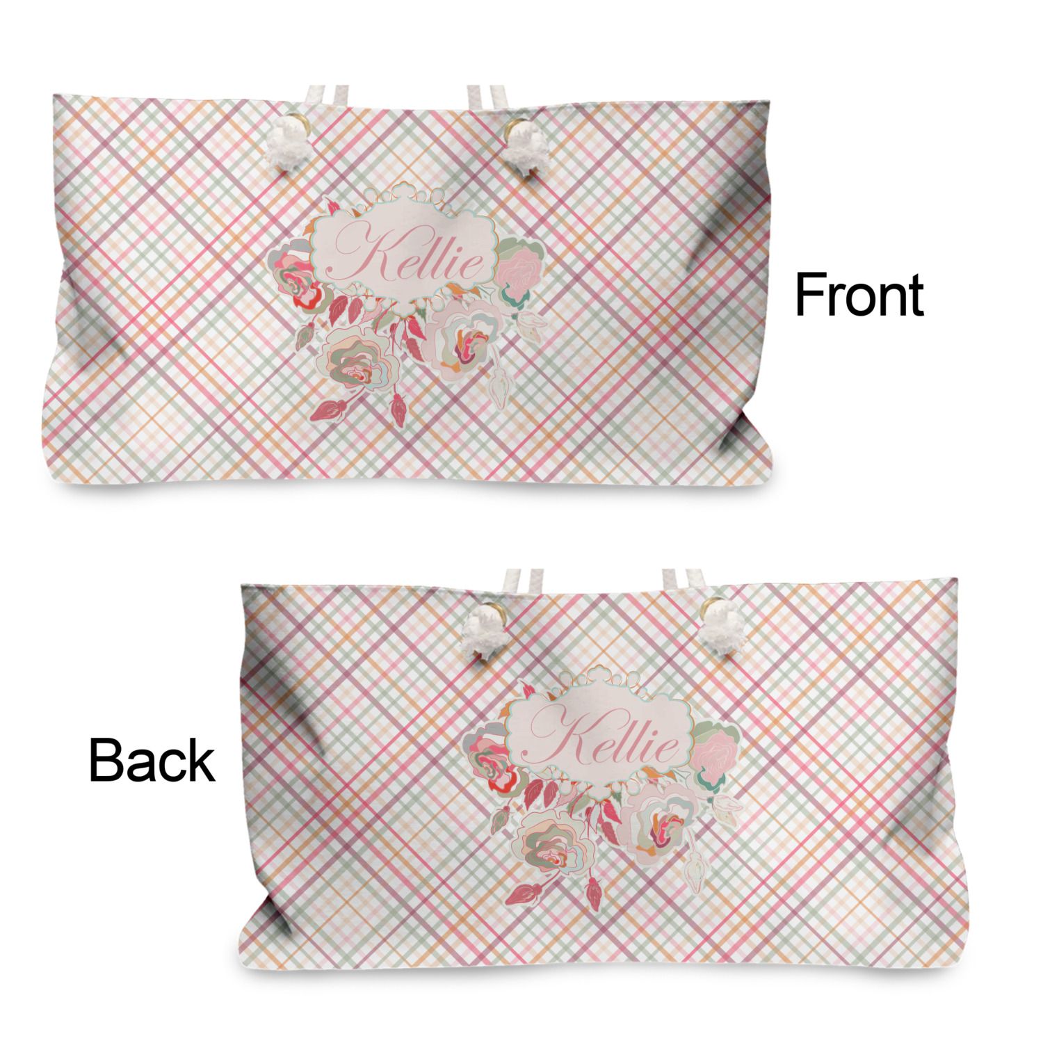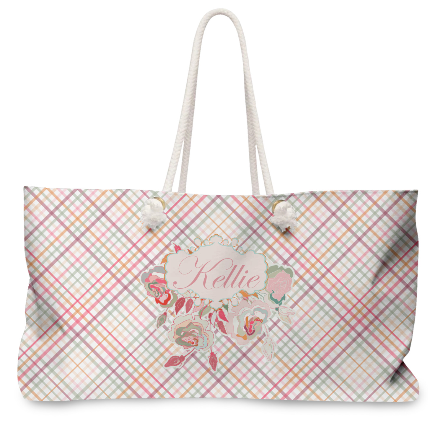 To make it really feminine, we chose a matching floral label that coordinates perfectly with the modern plaid. We chose to use a name personalization in our crown jewels font. We think this is a beautiful elegant design.