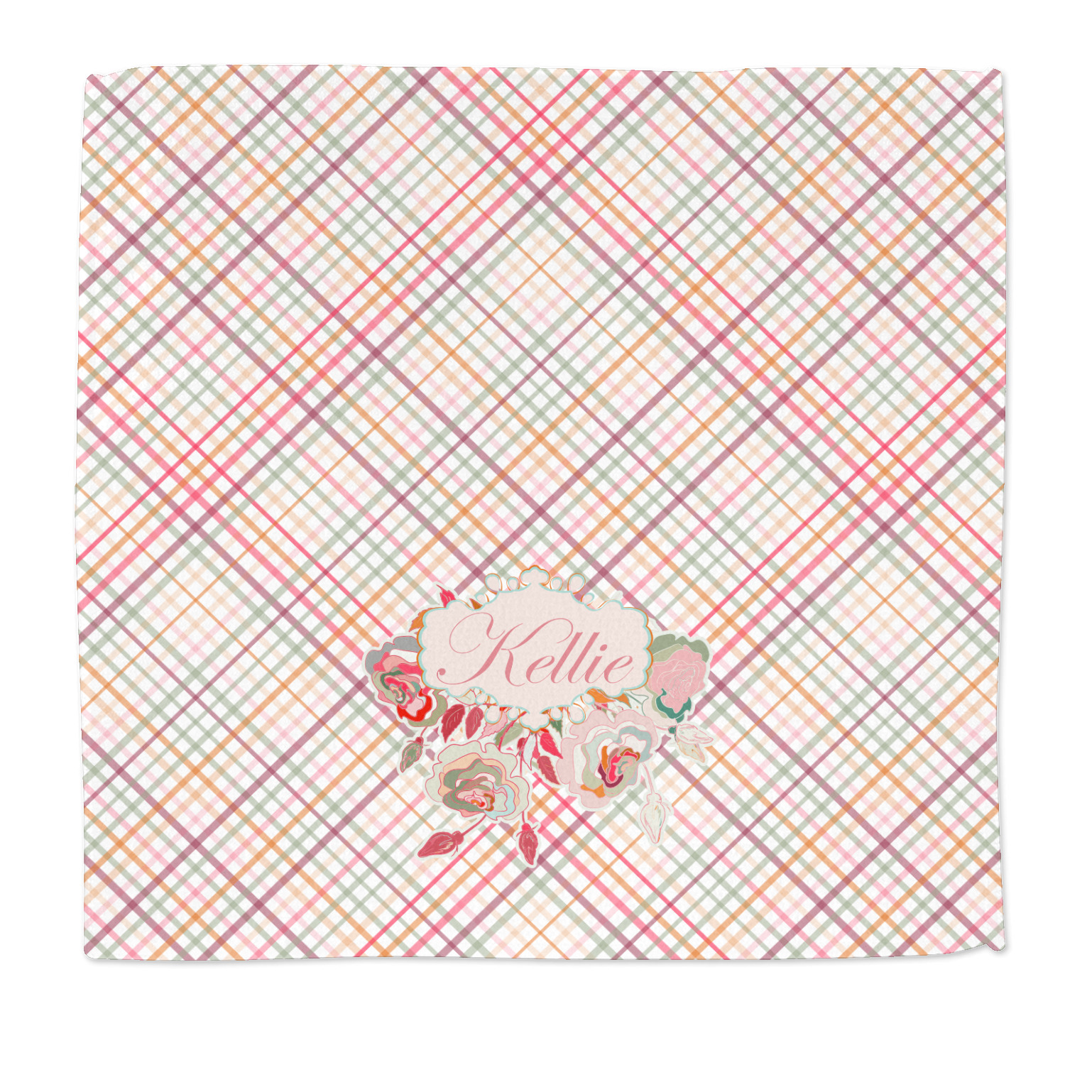 To make it really feminine, we chose a matching floral label that coordinates perfectly with the modern plaid. We chose to use a name personalization in our crown jewels font. We think this is a beautiful elegant design.